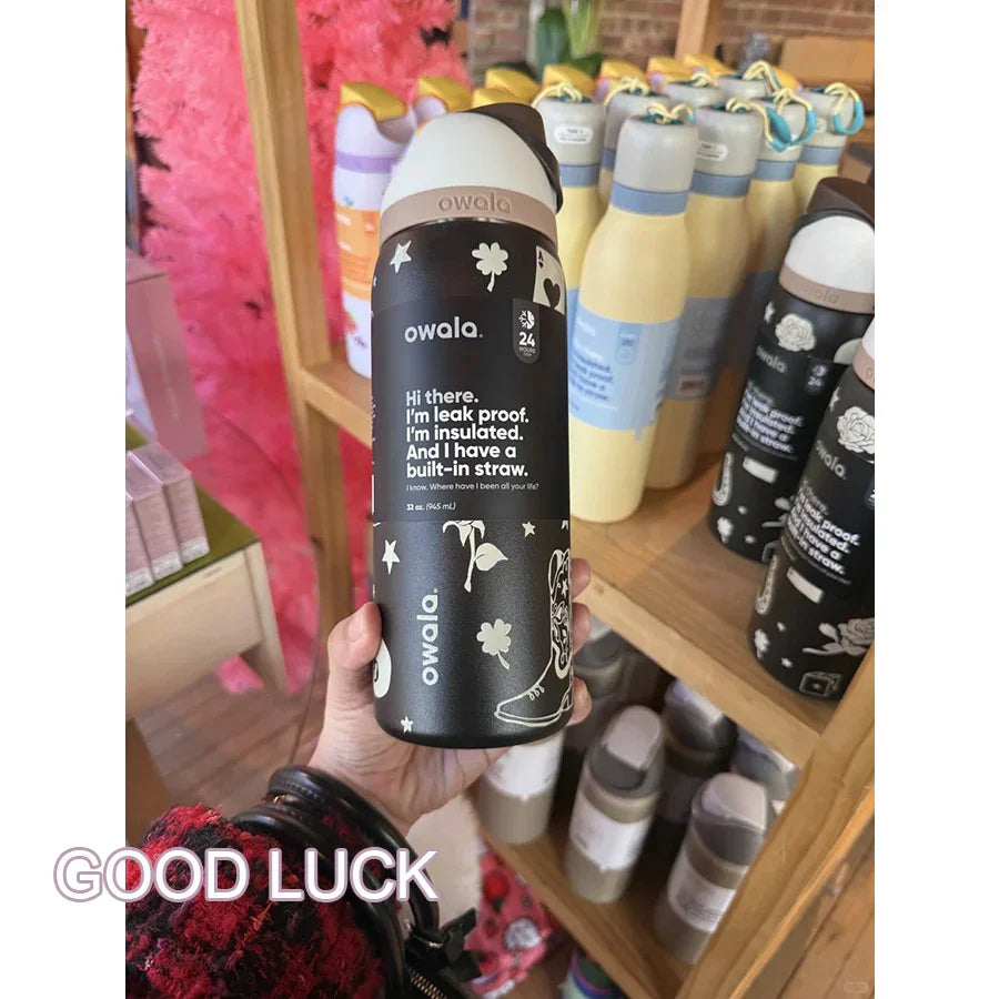 Stay hydrated on the go with the Owala Insulated Stainless Steel Free Sip Water Bottle. Its innovative design allows for easy sipping while keeping your drink cold for hours. Plus, its Good Luck pattern adds a unique touch of style. Perfect for any adventure or daily use.