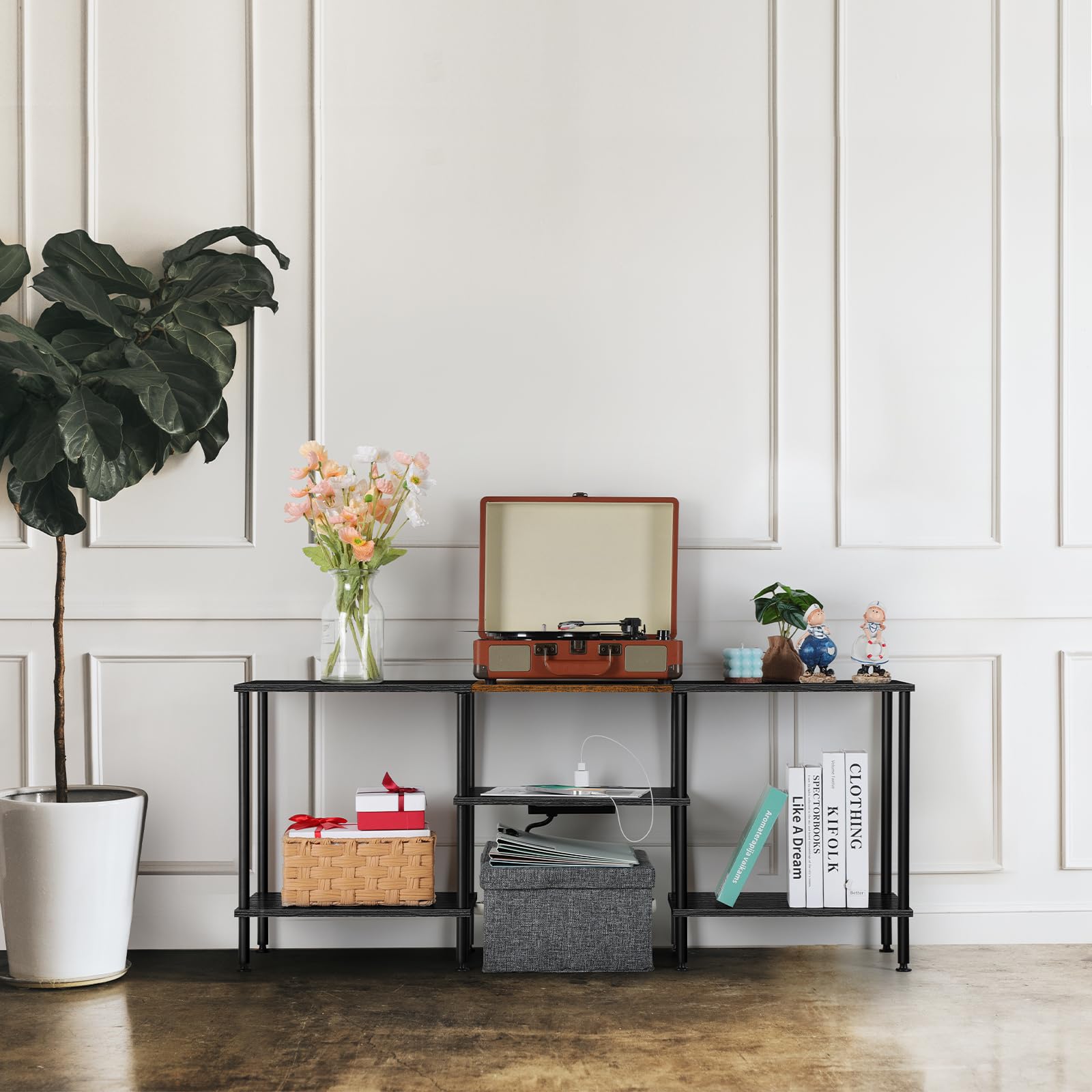 - 【Generous Storage Capacity】Keep your living space tidy and organized with our small TV stands for living room. Designed with a spacious tabletop and open storage shelves, the entertainment stand with storage offers ample space to store your books, speakers, magazines, TV boxes, CDs, cable boxes, and other items.