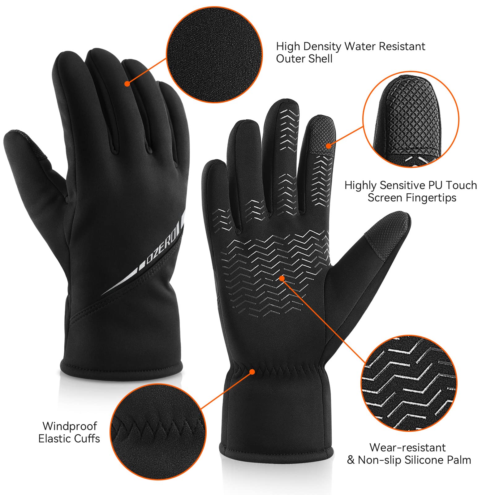 OZERO Winter Gloves Men Women - Coldproof Waterproof Touchscreen Glove - Keep Warm in Cold Weather for Driving Cyling Black Medium