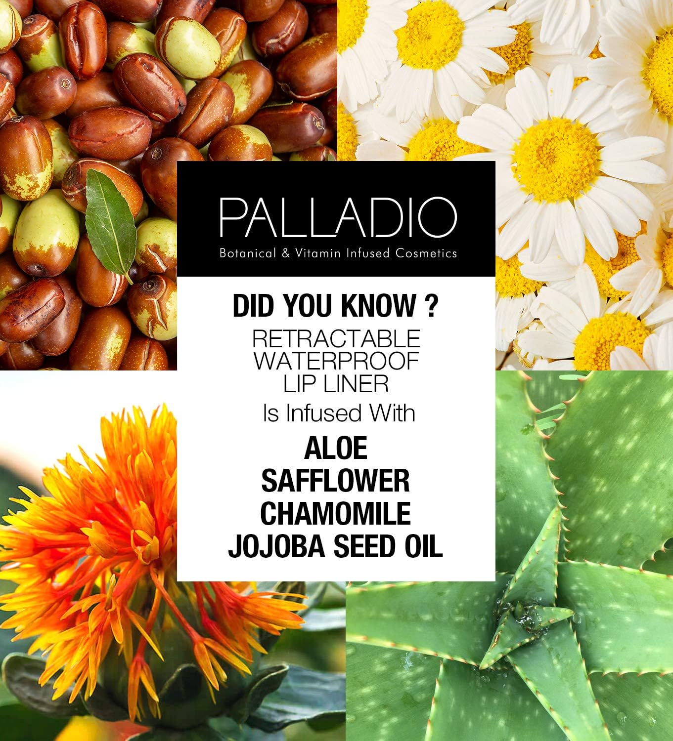 - FORMULATION/ BENEFITS: This high-performing Palladio retractable lip liner is 100% cruelty-free, gluten-free, paraben-free, and is formulated with nourishing Aloe Vera and soothing Chamomile Extract.