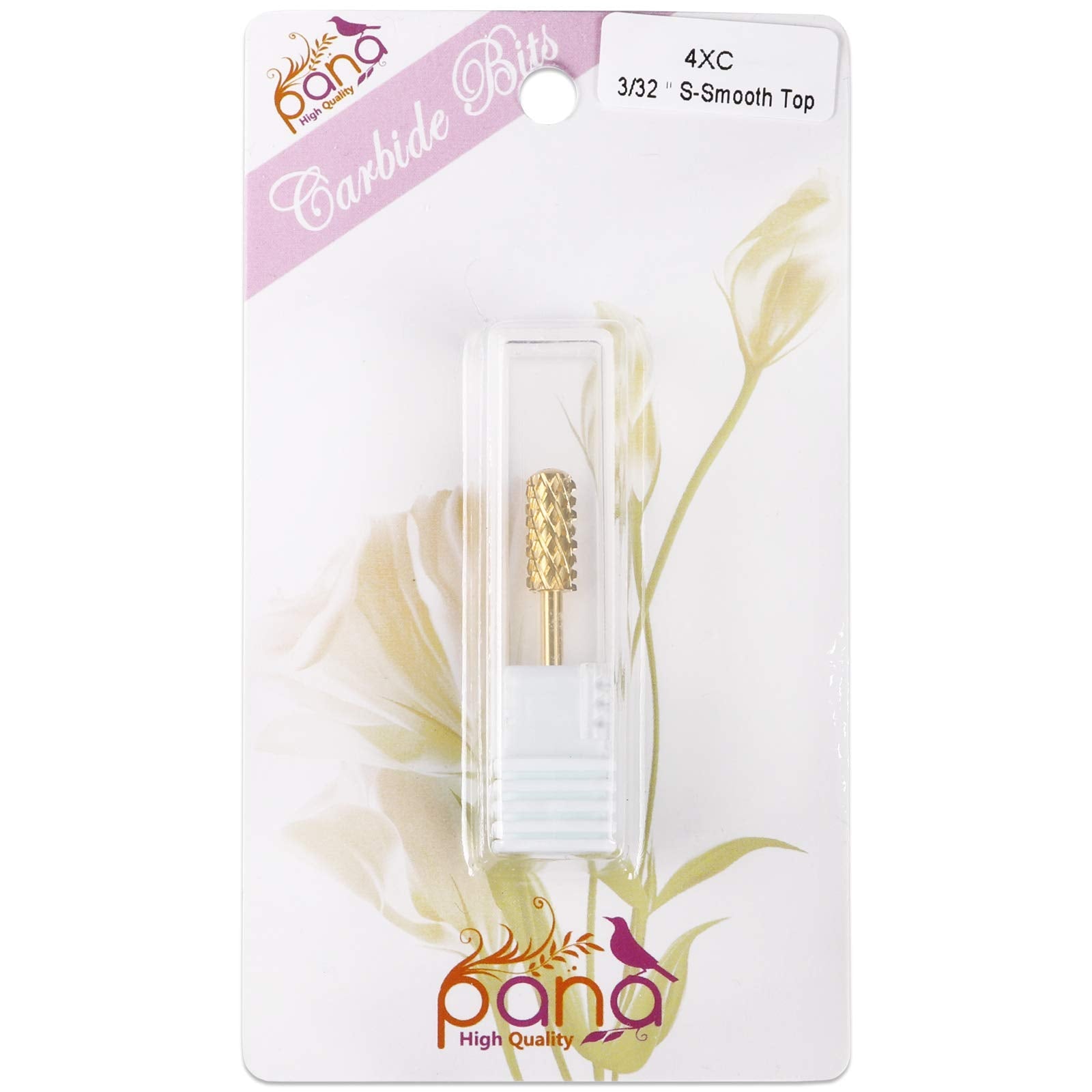 PANA 3/32" Small Smooth Round Top Safety Carbide Nail Drill Bit for Gel Polish & Acrylic Removal Nail Salon Manicure Pedicure Electric File Tools (Small Barrel - Gold, 4X Coarse)