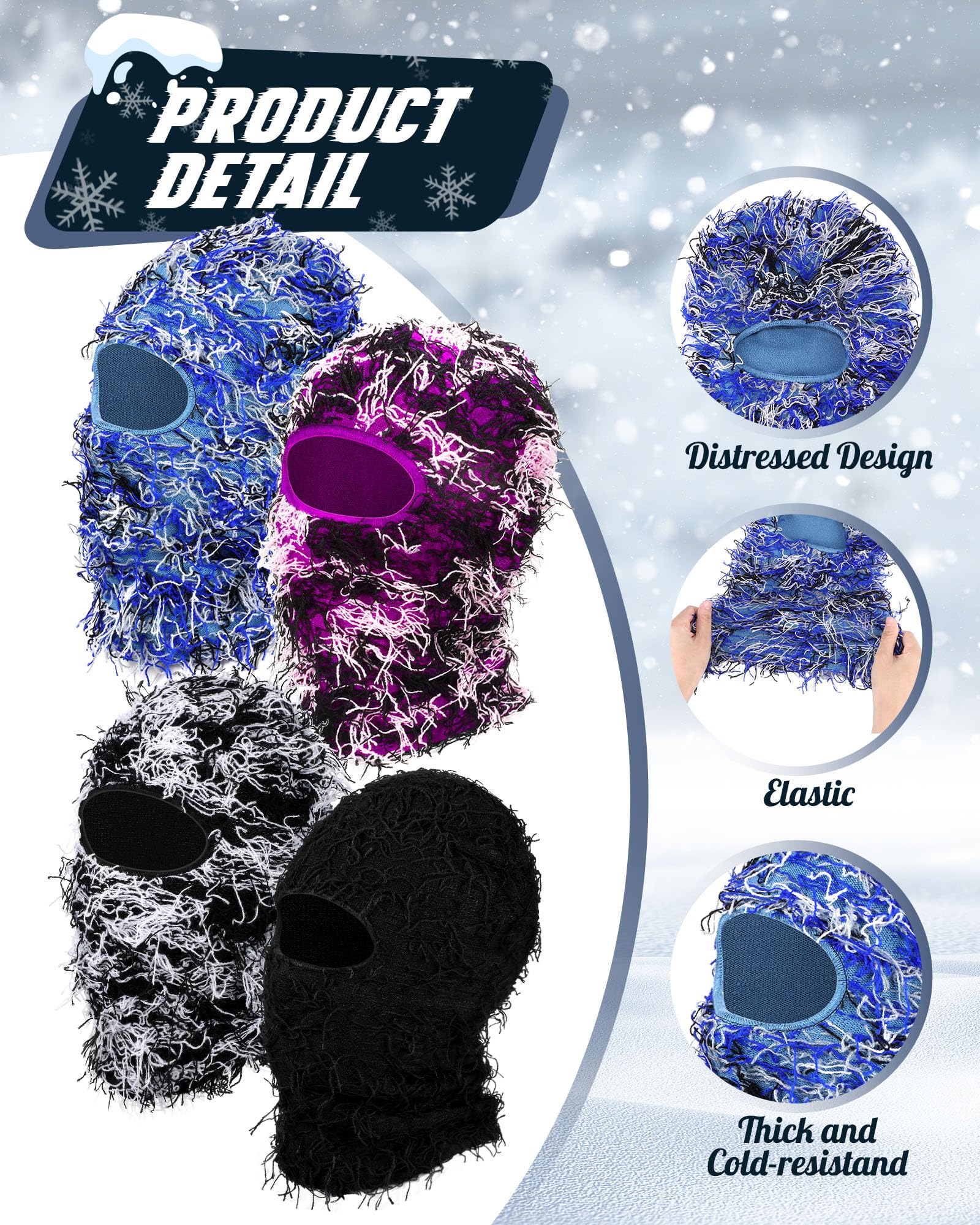 Panitay 4 Pcs Men Distressed Balaclava Winter Trending Ski Masks Women Wind Proof Furry Distress Face Mask (Main Black,White)