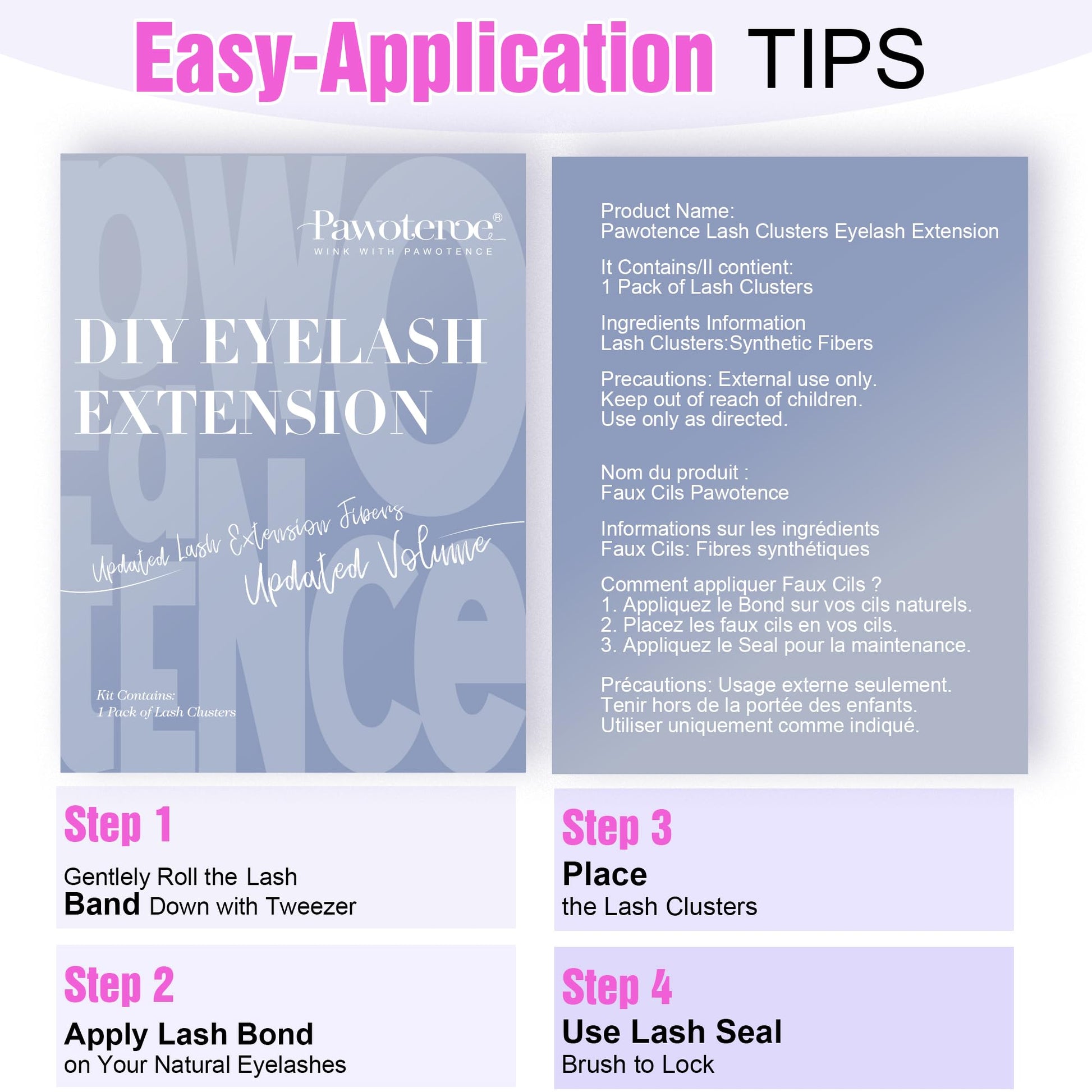 - Easy-Application Tips: Gentlely roll the lash band down with tweezers; Apply lash bond on your eyelashes; Place the lash clusters; Use lash seal brush to lock