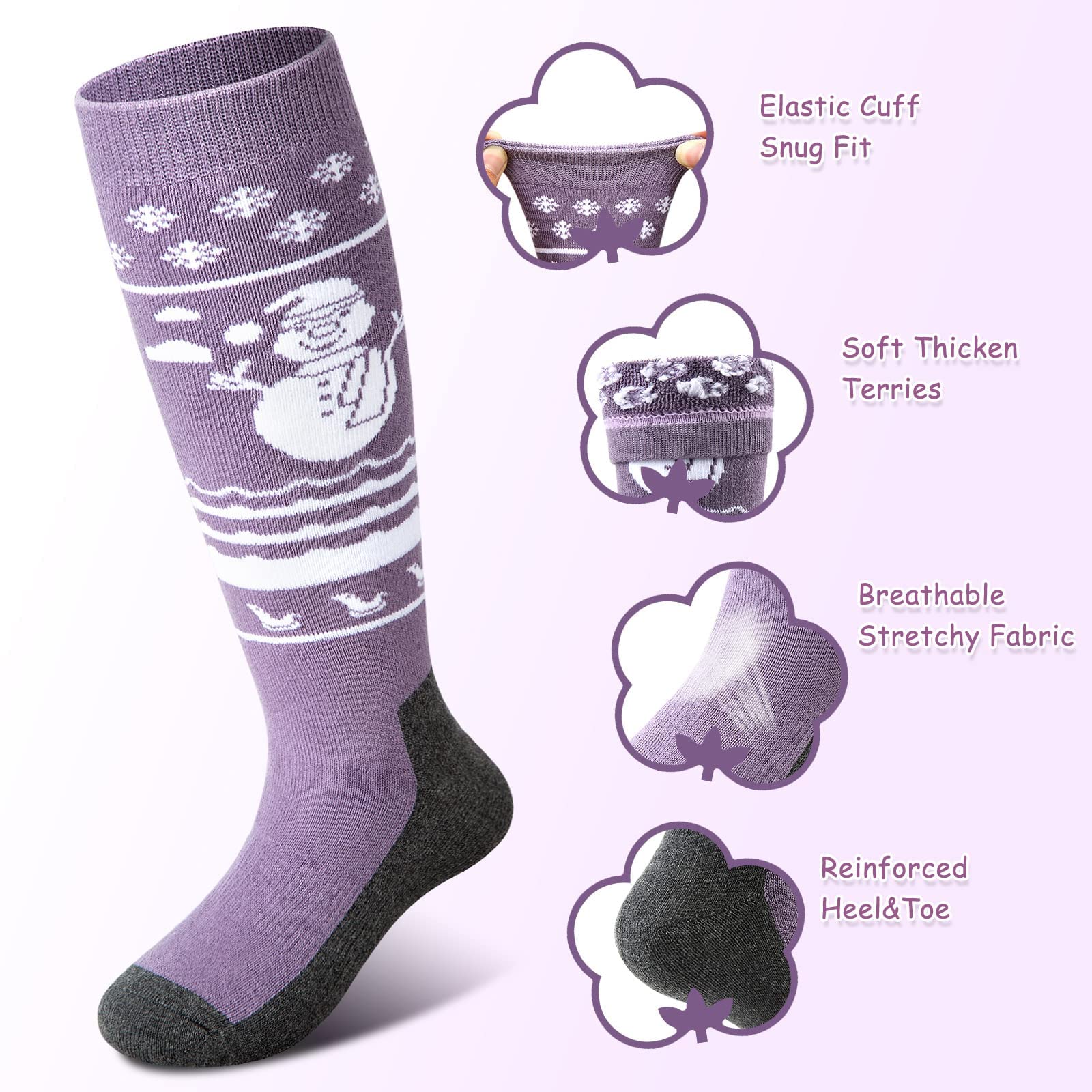 Pecube Kids Ski Socks 2 pairs Thermal Thick OTC Snow Socks for Boys Girls Toddler Skiing Snowboard Skating Winter Sports
