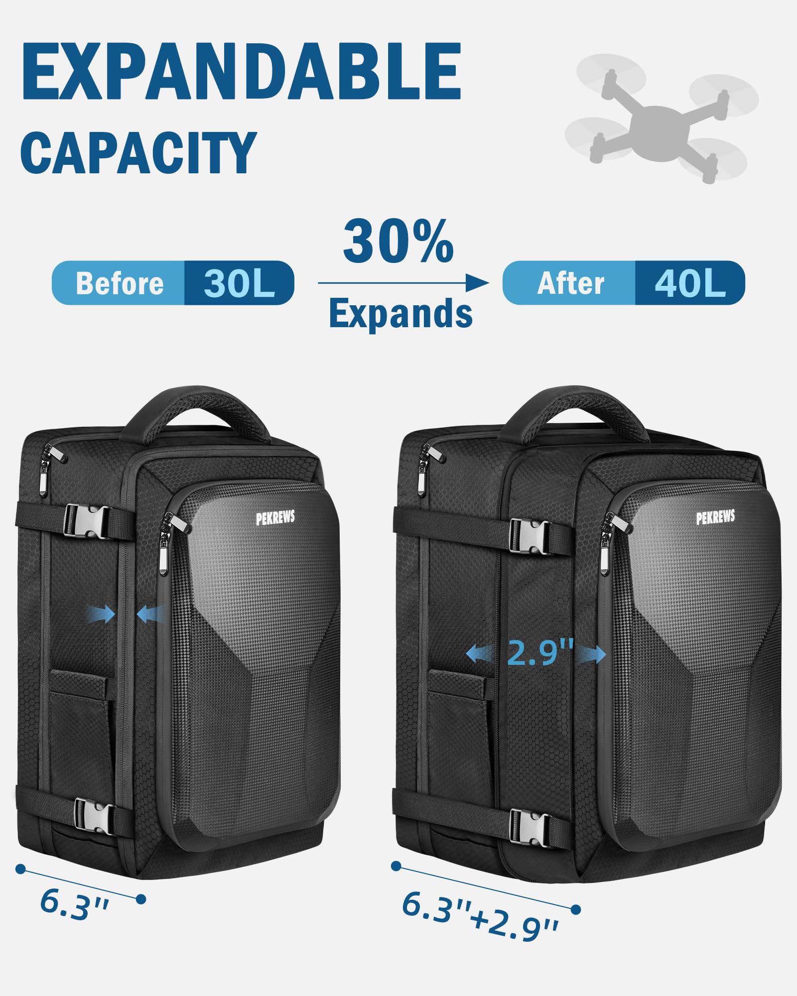 - EXPANDABLE LARGE CAPACITY: The Avata 2 case has an expandable compartment for ample capacity. Unzip to get 40 L storage, the main room can fit a camera, clothes, and travel items for a short trip. The suitcase-style opening makes it easy to remove clothing without wrinkling. The tech compartment accommodates a 17.3-inch laptop and a 13.3-inch iPad. A hidden pocket on the back stores items like a passport or a wallet for quick access, while the side pocket conveniently holds a water bottle.