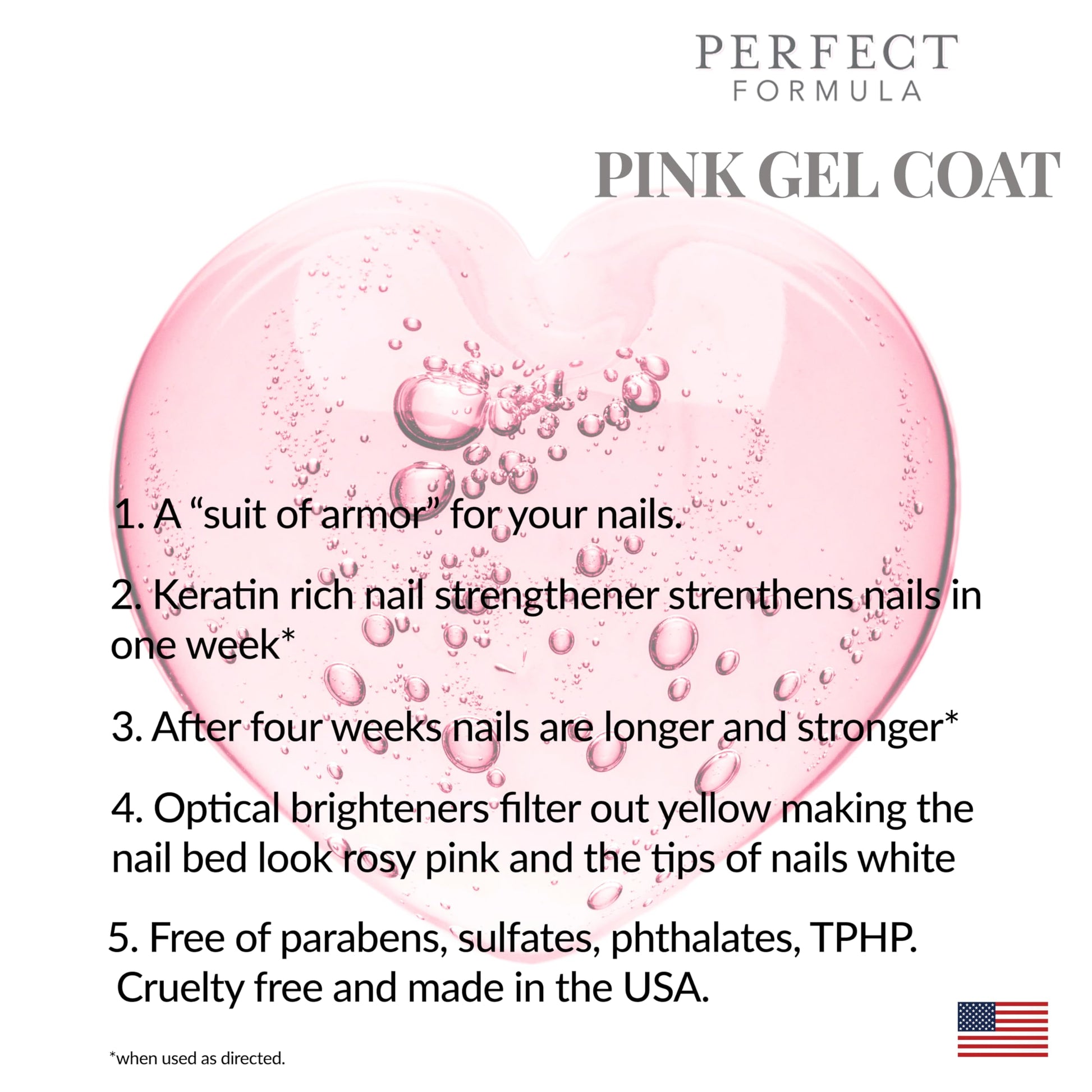 Perfect Formula Pink Gel Coat - Nail Strengthener and Strengthening Polish for Women, Extra Strong Nail Hardener, Keratin Treatment for Damaged Fingernails