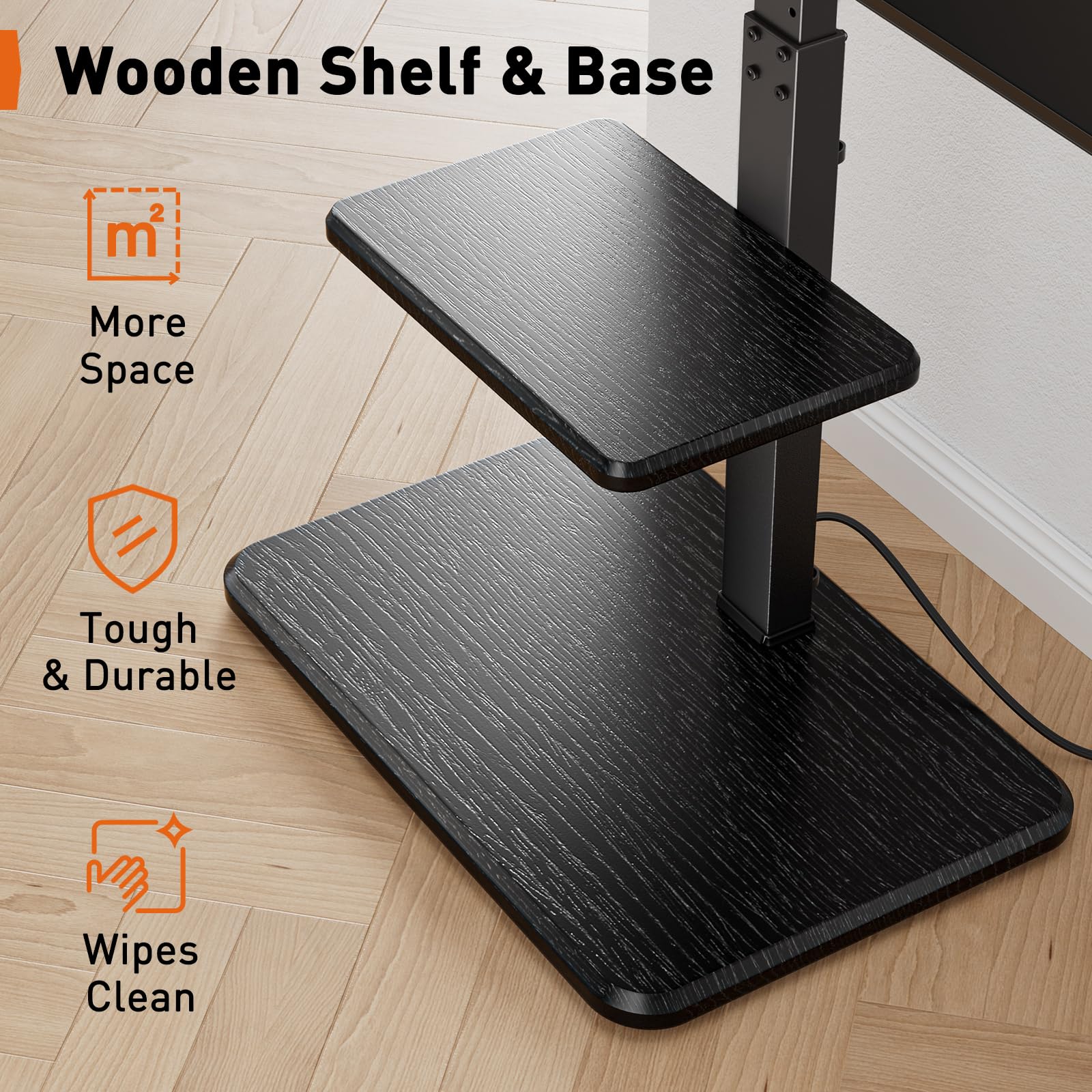 - Sturdy Wood Base: The swivel TV stand is designed with a 23.6″ x 15.7″ high-quality wood base that provides support for TVs up to 110 lbs. In addition to the large scratch-resistant base, the TV stand mount has a 15.7″ x 10.2″ height-adjustable media shelf that can hold AV components up to 22 lbs.