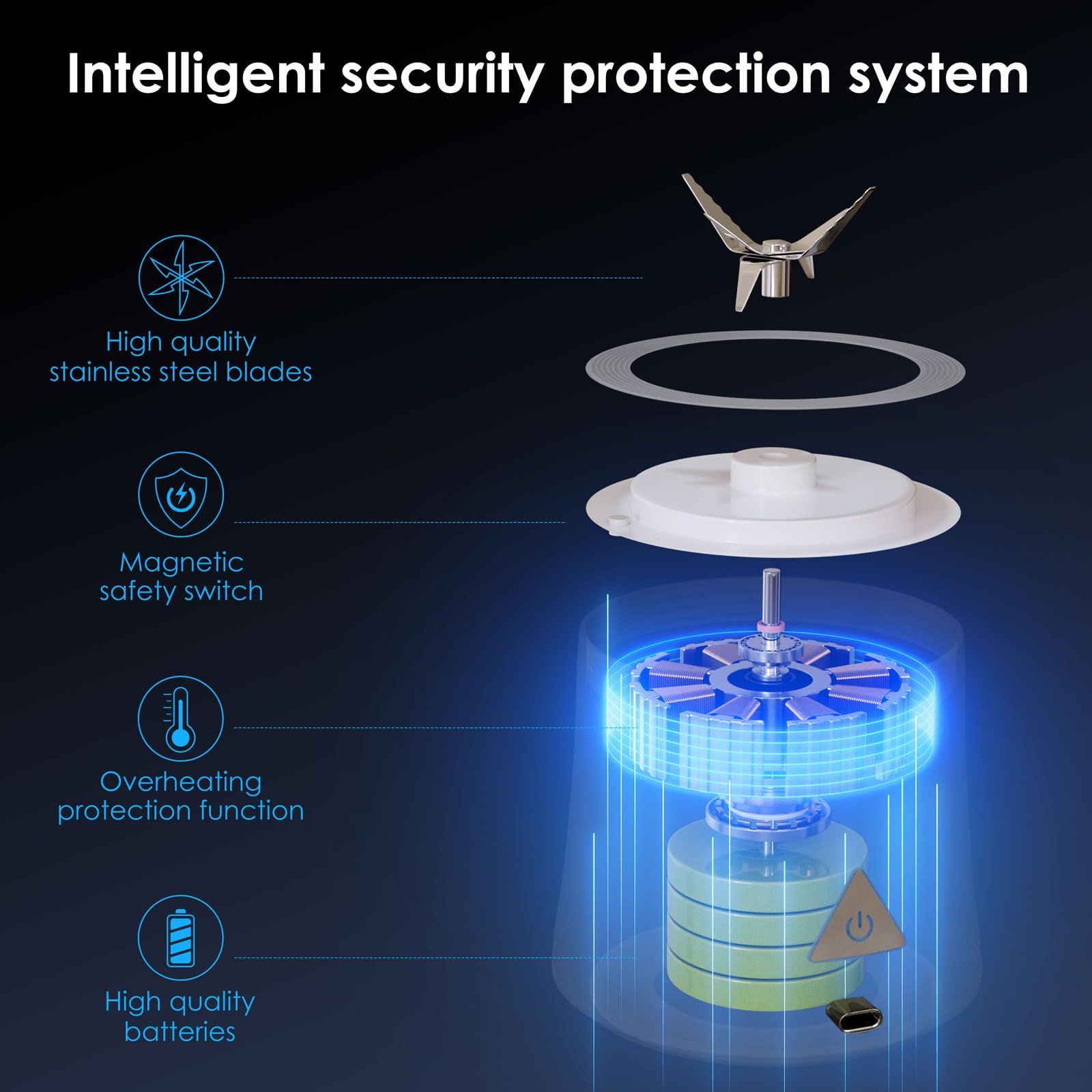 - BPA-Free Safety & Smart Magnetic Lock: Crafted with military-grade BPA-free Tritan material, our 24oz blender cup ensures toxin-free drinks for kids, athletes, and health-focused users. The patented magnetic safety system halts operation instantly if the cup/base connection isn’t secure—no accidental spills or blade exposure. Dishwasher-safe components simplify cleanup, while leak-proof lids make it ideal for on-the-go hydration.