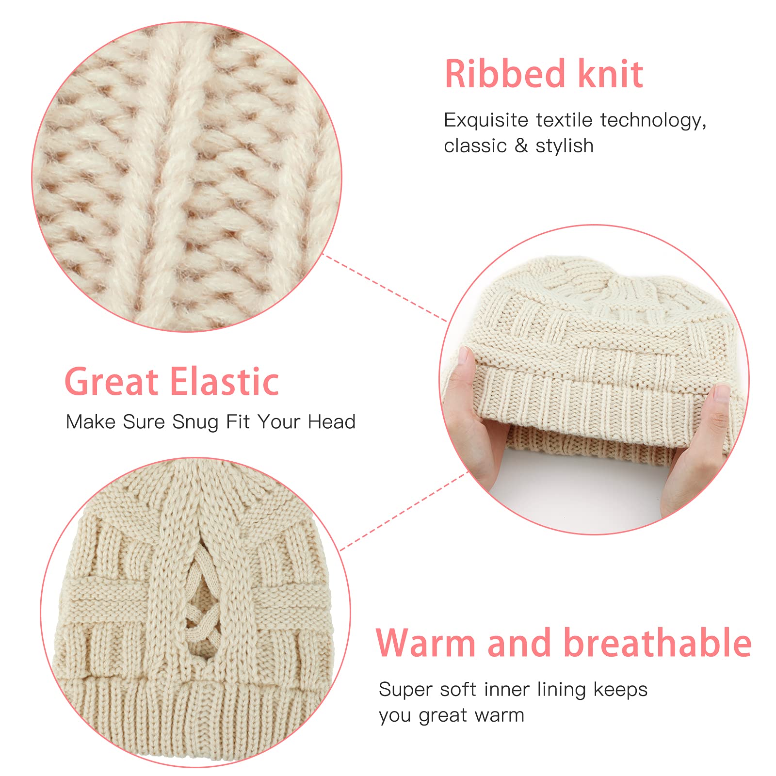 - ❤【Warm & Comfort & Stylish】Our knit hat keep your head and ears warm & cozy without sacrificing your style. Ideal for running, skiing, snowboarding, winter vacation, winter sports, camping, festivals, hiking, walking the dog, a girls’ night, shopping, going to the movies or any other outdoor activities in cold weather. Beanie Tails are great to keep your hair up and your head warm while you workout.