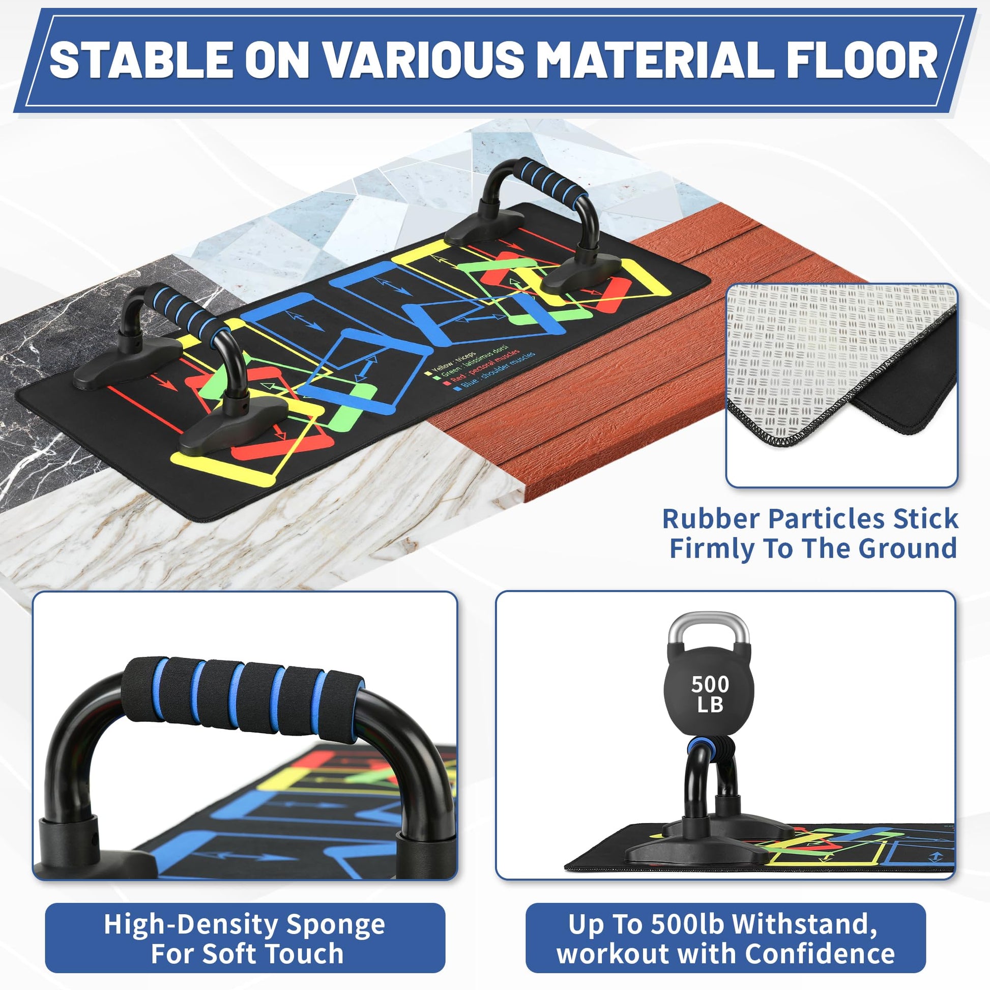 - [High Quailty Product] - The push up mat is made of durable synthetic fiber, which offers a non-slip stable experience. Push up handles are upgraded to alloy steel that provide a safety workout base. It's perfect for toning and strengthening your body wherever you go!