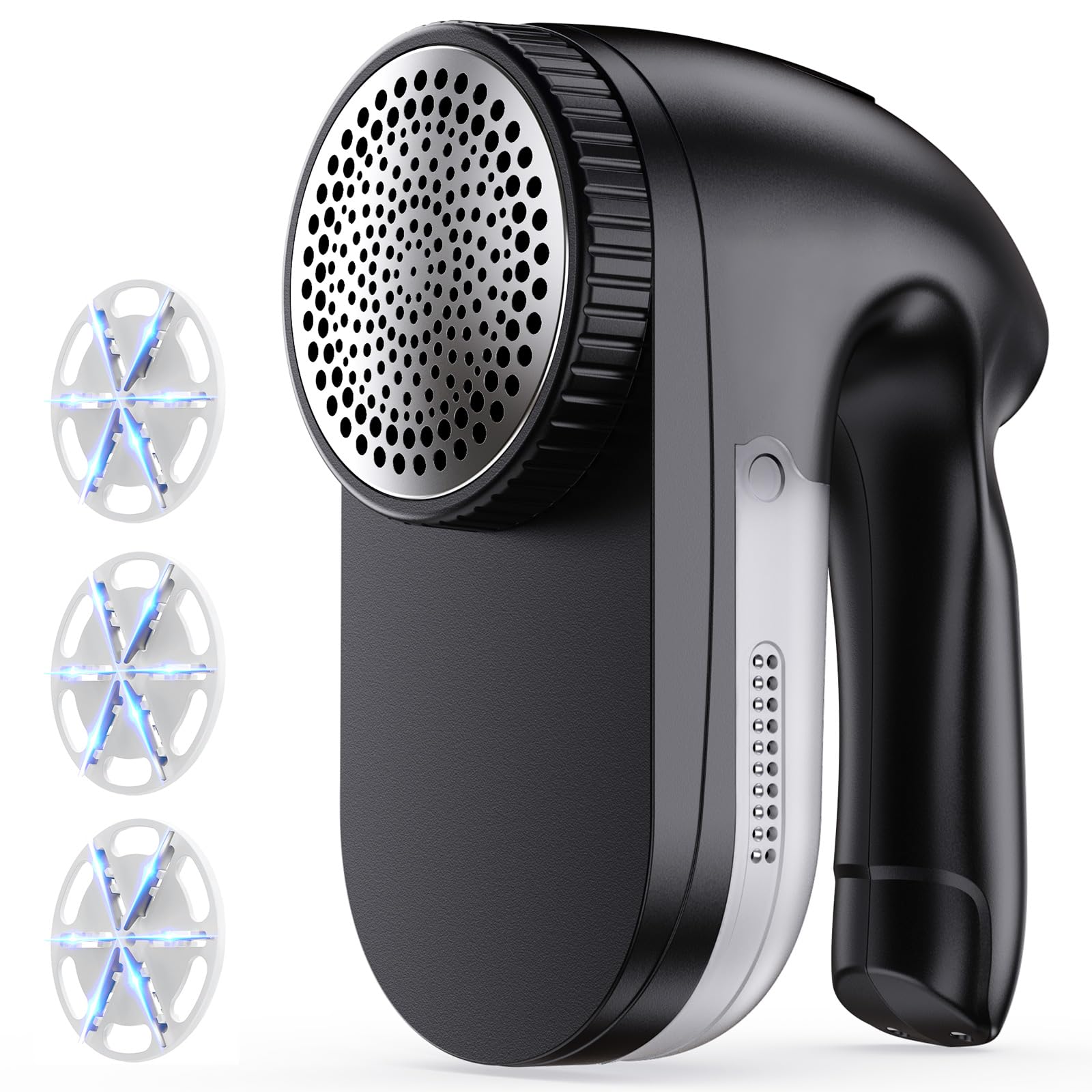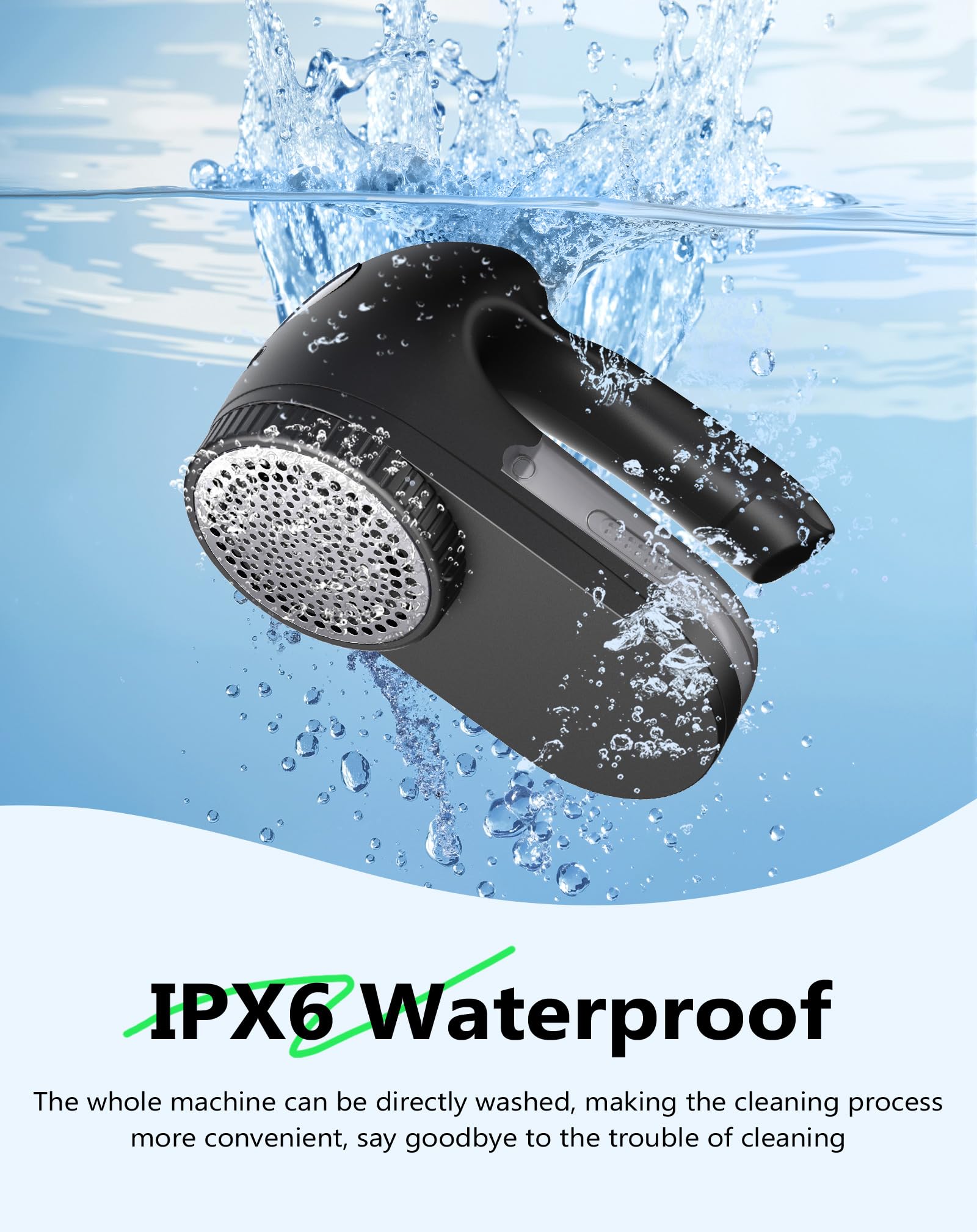 PKBD IPX6 Waterproof Washable Electric Fabric Shaver and Lint Remover, Rechargeable Sweater Defuzzer with 3 Free Extra Blades, Quickly and Effectively Remove Fluff,Fuzz,Bobbles for Clothes, Dark Black