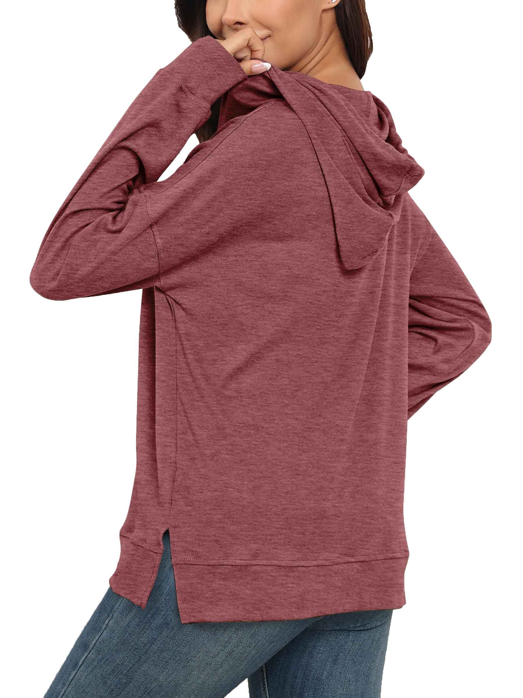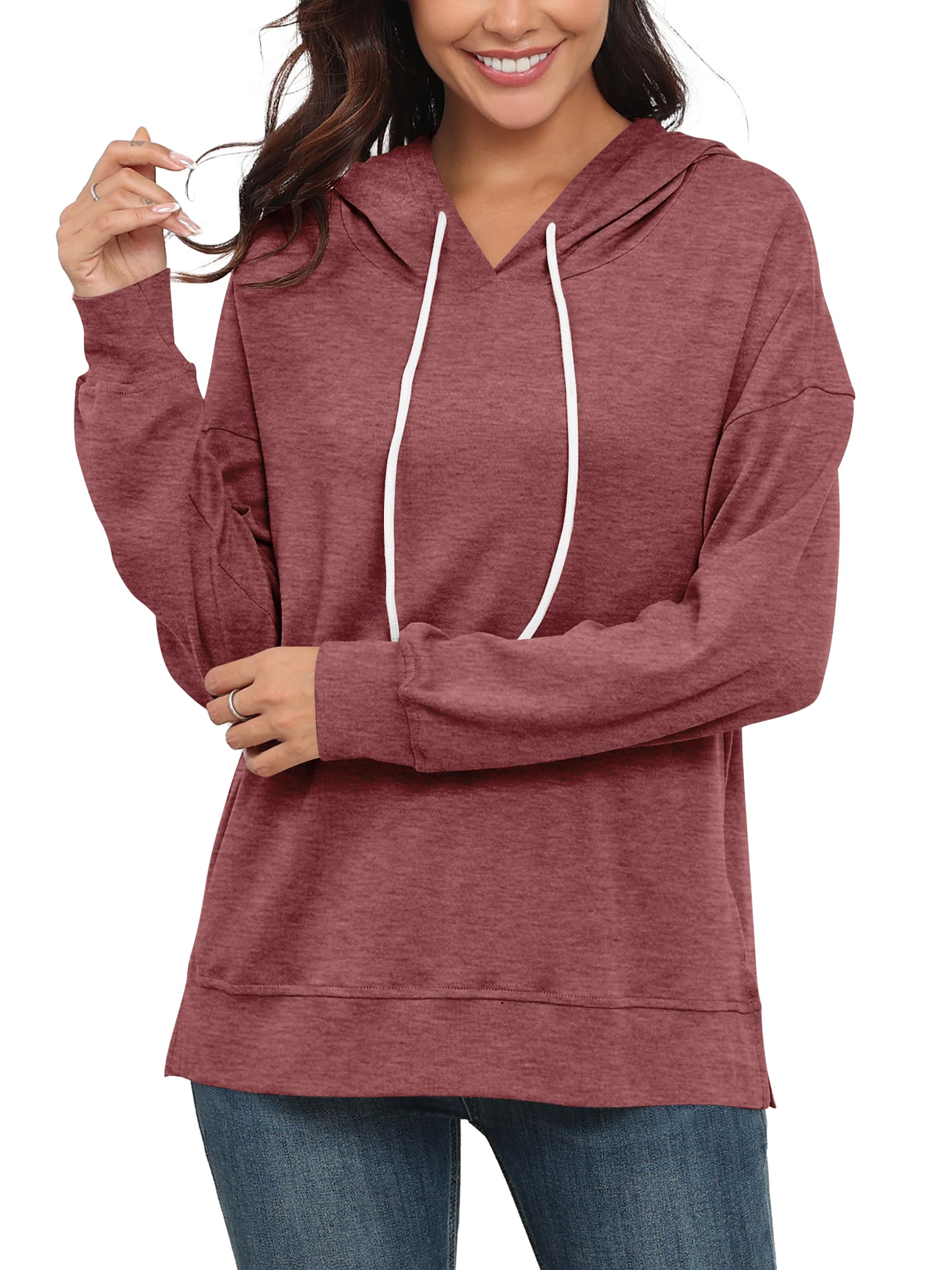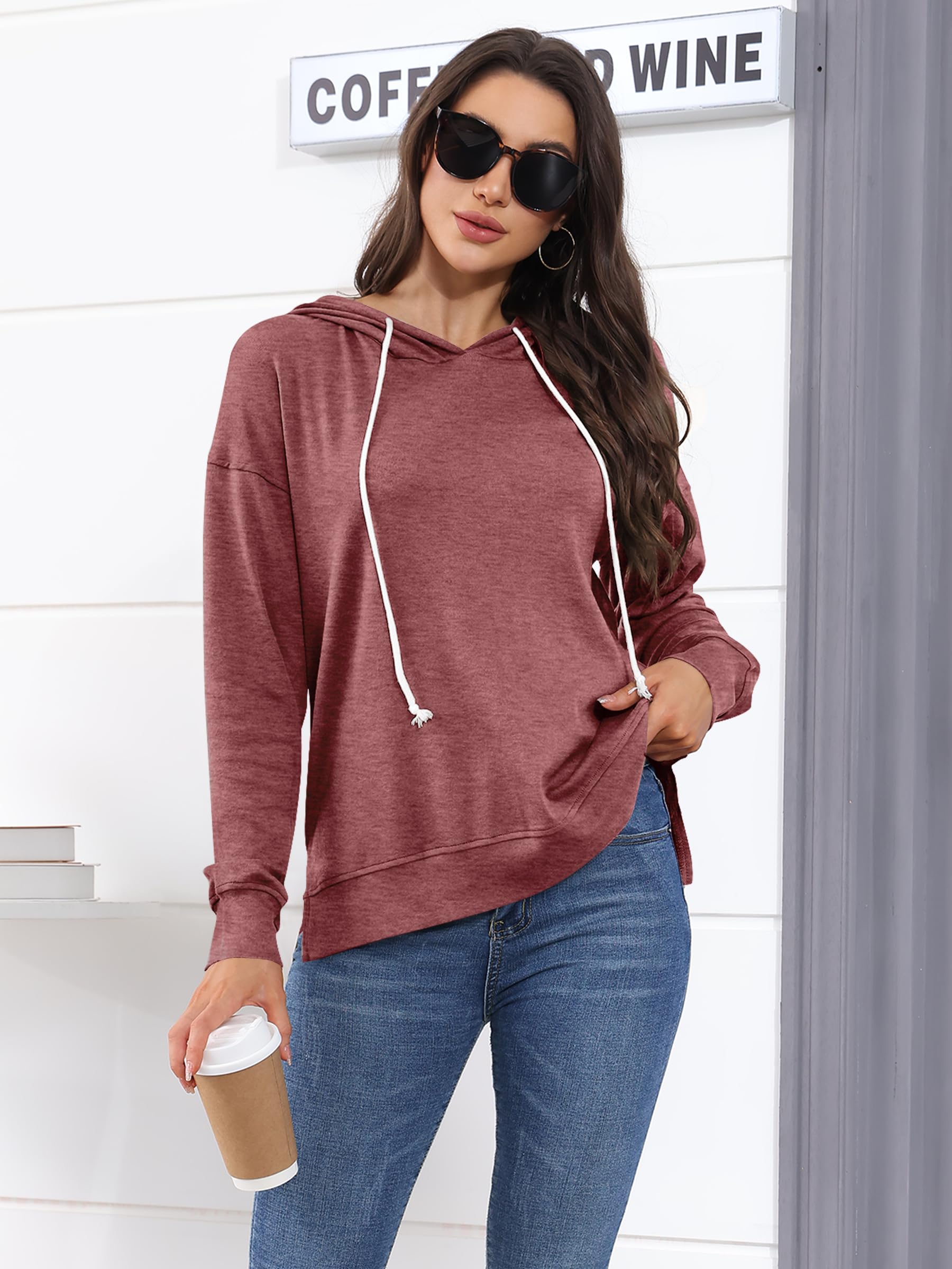 - Features:Essential hoodies for women, long sleeve, crew neck, with hood, adjustable drawstring, drop shoulder, side slit hem, lightweight, loose fit, skin friendly, breathable, basic and casual, suitable for fall and winter.