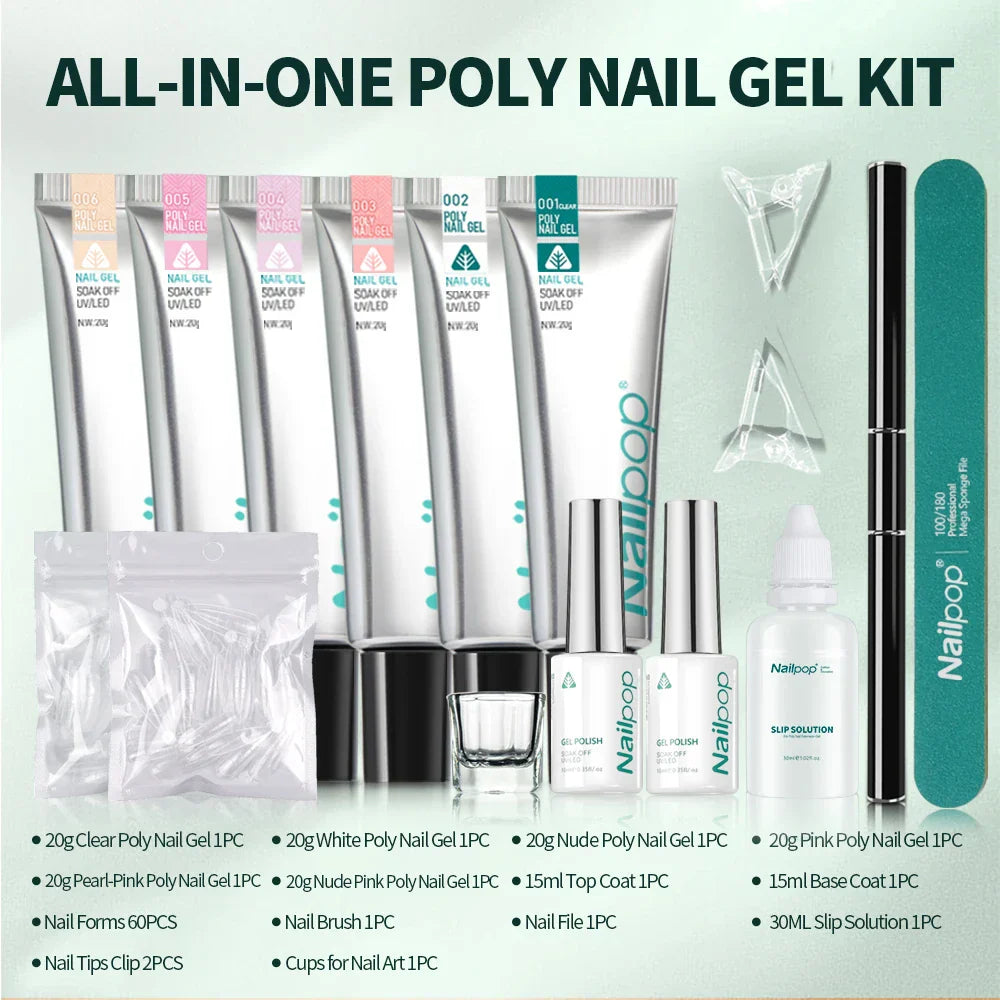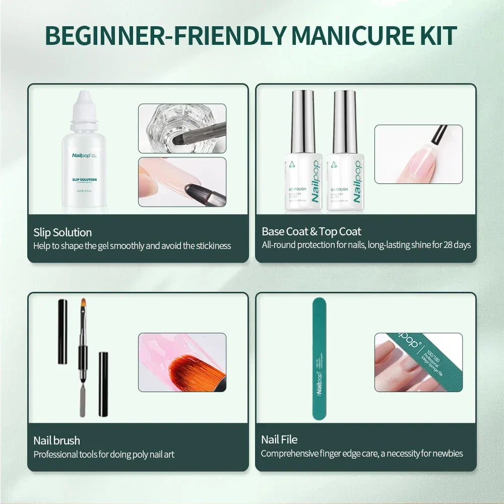 Get flawless and long-lasting nails with our Poly Nail Extension Gel Kit. Achieve salon-quality results without the cost or time. Our easy-to-use, all-in-one kit includes everything you need for beautiful polygel extensions. Say goodbye to brittle, chipped nails and hello to durable, customizable, and natural-looking extensions.
