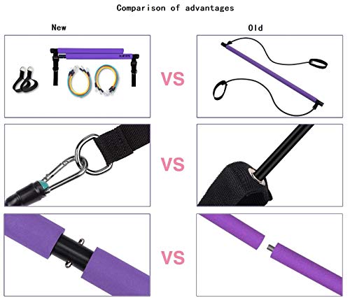 - FULL BODY WORKOUTThe pilates resistance band will help you build muscle lose weight and tone your arms abs legs and glutes while also getting cardio in and increase flexibility agility. Easy to use at home or in a personal training studio save you time and money going to a gym.: HIGHEST QUALITY MATERIALSPilates bar is constructed of high quality steel wrapped with a soft foam grip for comfort.with two 30 inch Resistance band power cords and attached Foot Loops.the resistance band is made of high-quality latex eco-friendly no smell and it has strong durability and excellent resilience not easily deformed.: MULTIPLE USESPilates stick is often used for Yoga stretching exercises fitness and other training programs. You can do various training actions can replace a barbell to exercise back and arm muscles can replace a pull rope to exercise leg muscles can exercisewaist and abdomen by waist twisting actions.: LIGHTWEIGHT ANDPORTABLEPortable design easy set-up effective sweat resistance design lightweight and portable easy to use at home or in a personal training studio.
