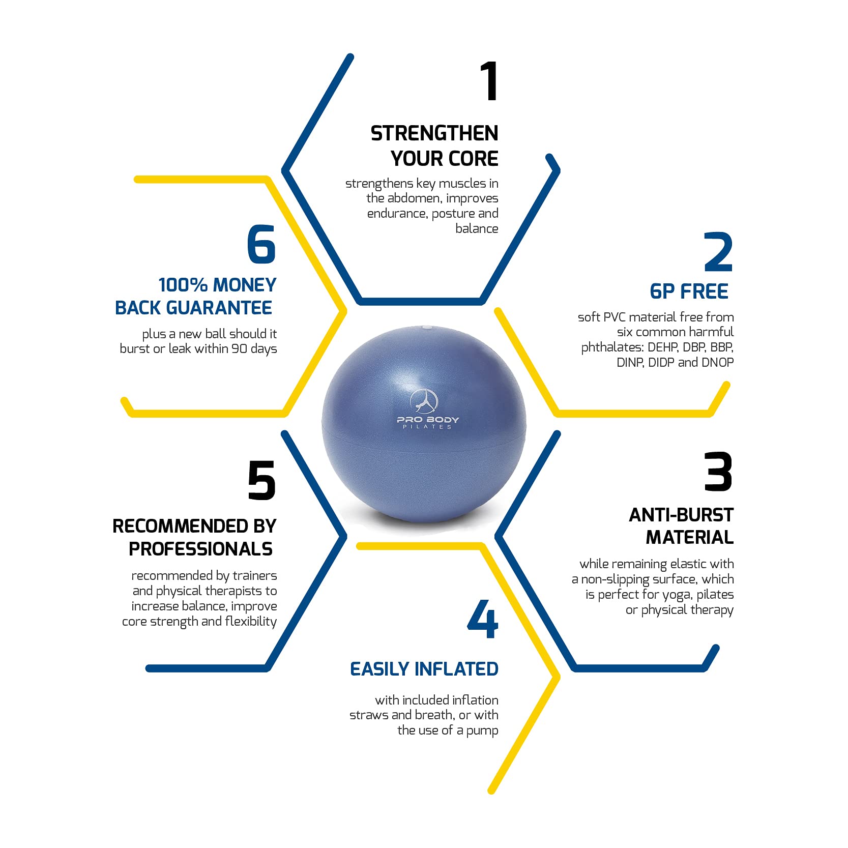 - IMPROVE CORE STRENGTH with a fitness ball. The mini swiss ball helps you improve posture, balance, tone and strengthen muscles. Must-have exercise balls for working out at home or gym.