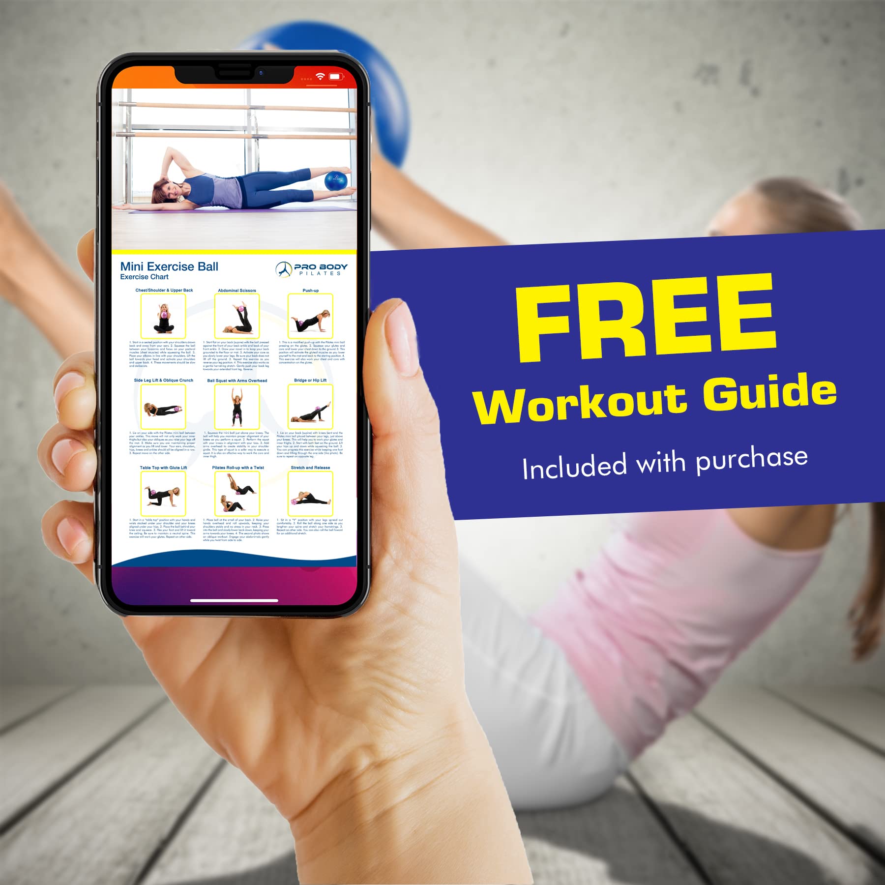 - INCLUDED with the small exercise ball for between knees are exercises and an extra inflation straw. The exercise ball for Pilates is inflated in seconds and is easy to bring on the run.