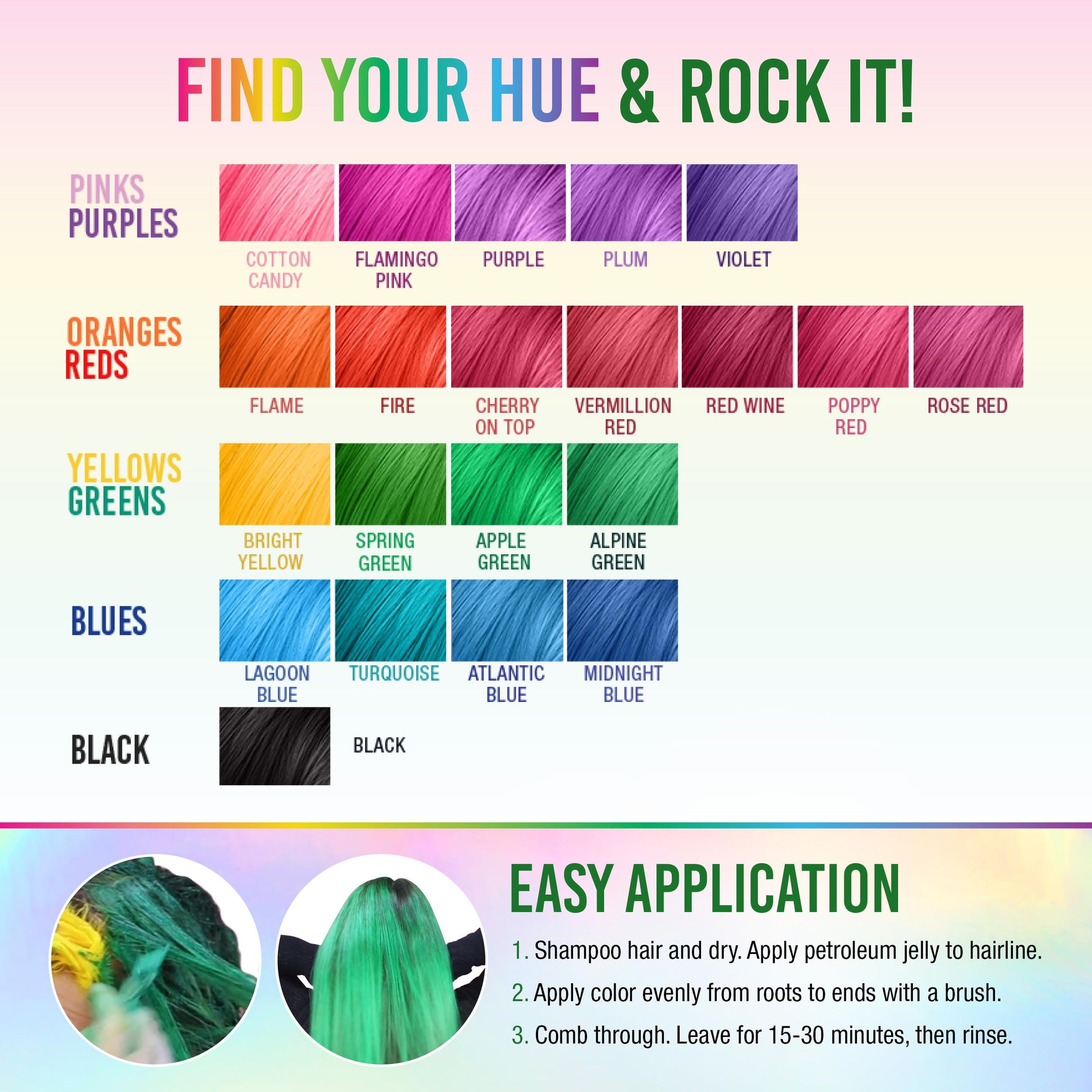 - Easy To Use & Apply Hair Tint: Hair color made easy with Punky! Just apply the color evenly from hair roots to ends with a tinting brush, comb through and leave on approximately 15-30 minutes and then rinse out. Easy peasy! No need for expensive hair salon visits!
