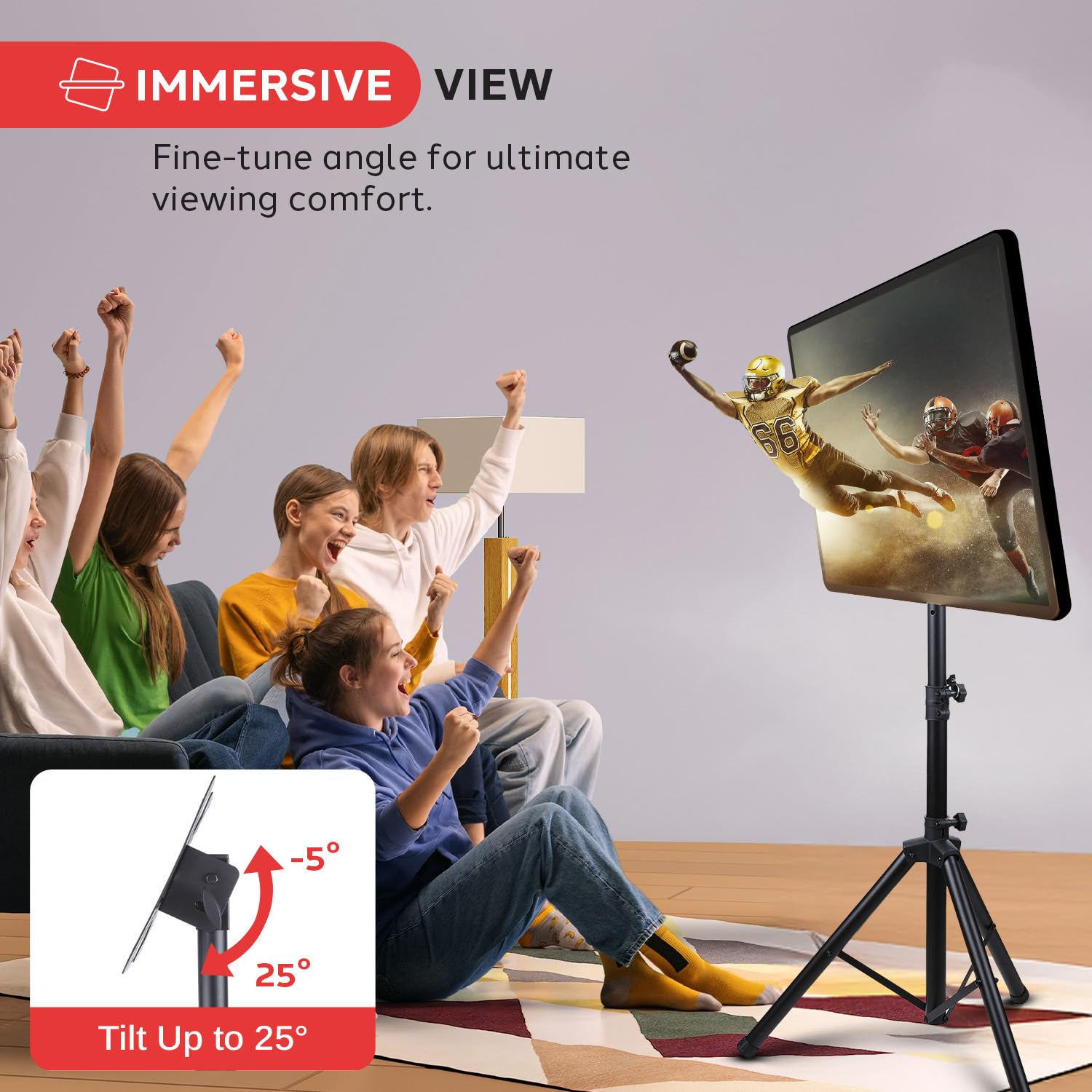 - HEIGHT ADJUSTABLE: The portable TV tripod features an adjustable viewing height from 4.3’’ to 56.1’’ and 5 - 25 degrees tilt adjustment.