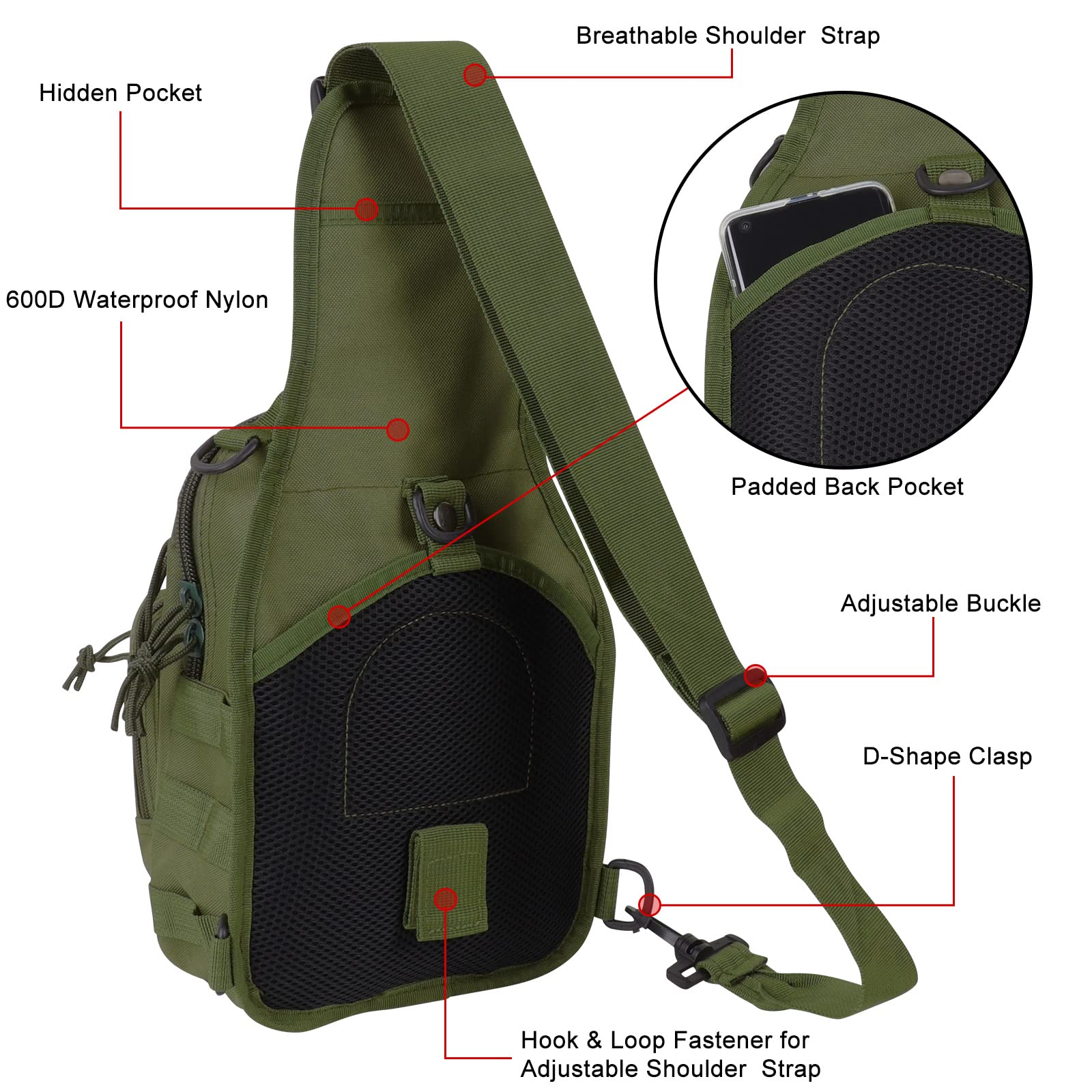 Qcute Tactical Backpack, Waterproof Military Cross-body Molle Sling Shoulder Backpack Chest Bag for Outdoor Every Day Carry (Army green)