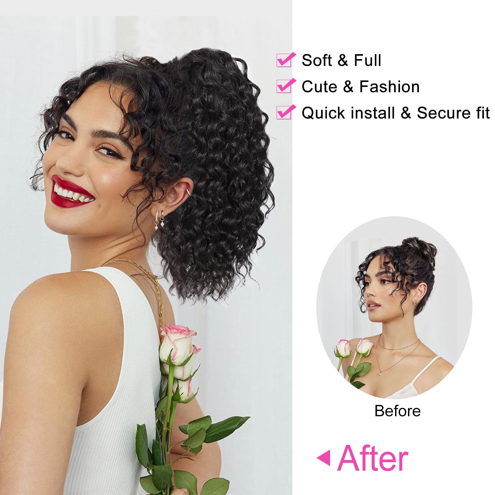 - Advantage:Crafted from high-quality synthetic pony tails hair extensions, these ponytail extension are soft, natural-looking, lightweight, and maintain their curls well. Our drawstring ponytail is designed specifically for black women and comes with 2 clips to ensure a secure fit