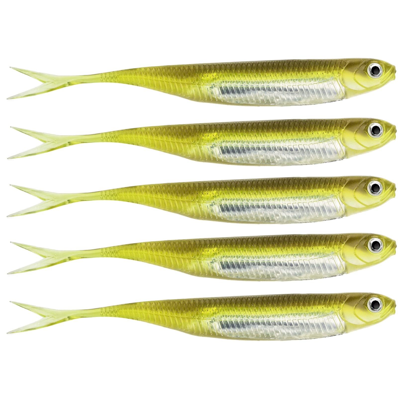 - SWIM BAIT LURES Soft Fishing lures come with split fork tail that recreates the natural movement of baitfish in subtle presentations, along with sequins inside body reflects better in the water, exactly what hungry fishes cannot ignore.