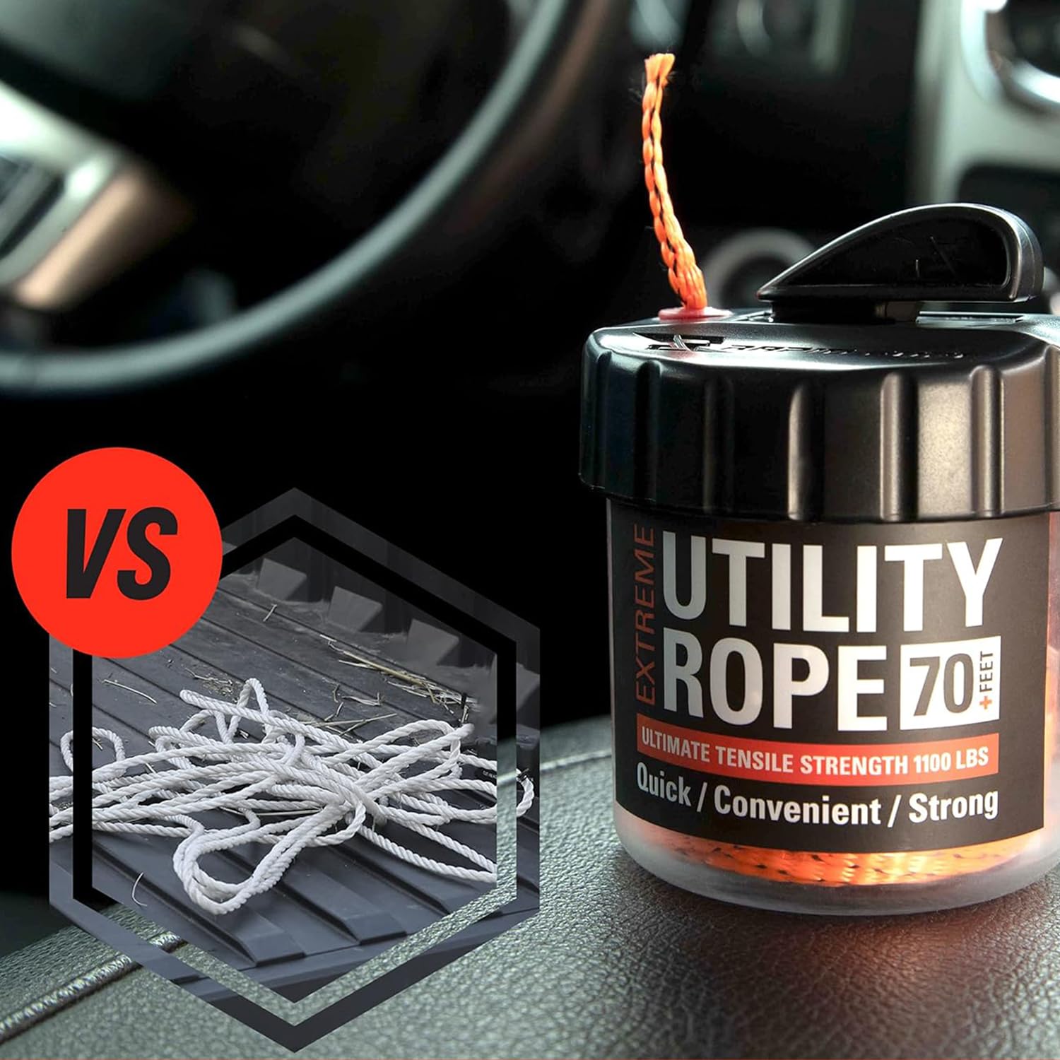 - ALL-IN-ONE ROPE DISPENSER AND CUTTER: Just pull the utility rope and slice it with the built in cutter. It’s that simple! Did we mention it’s tangle-free? That’s right, no more tangles or tangled utility rope whatsoever! It also doesn’t unspool since it’s in a shatterproof canister. You can also dispense it in any direction including upside down. This product is designed to give you the most efficient way to store and use rope.