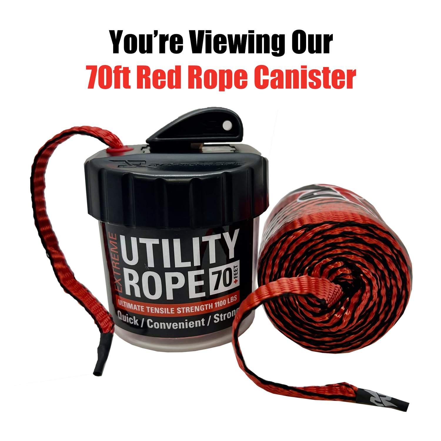 Rapid Rope Canister 70ft Red Flat Tactical Paracord, Made in USA, 1100lb Tested Heavy Duty Poly Rope Test Cord, Non-Tangle Dispense Included - Hiking, Camping, Survival, Utility, Climbing