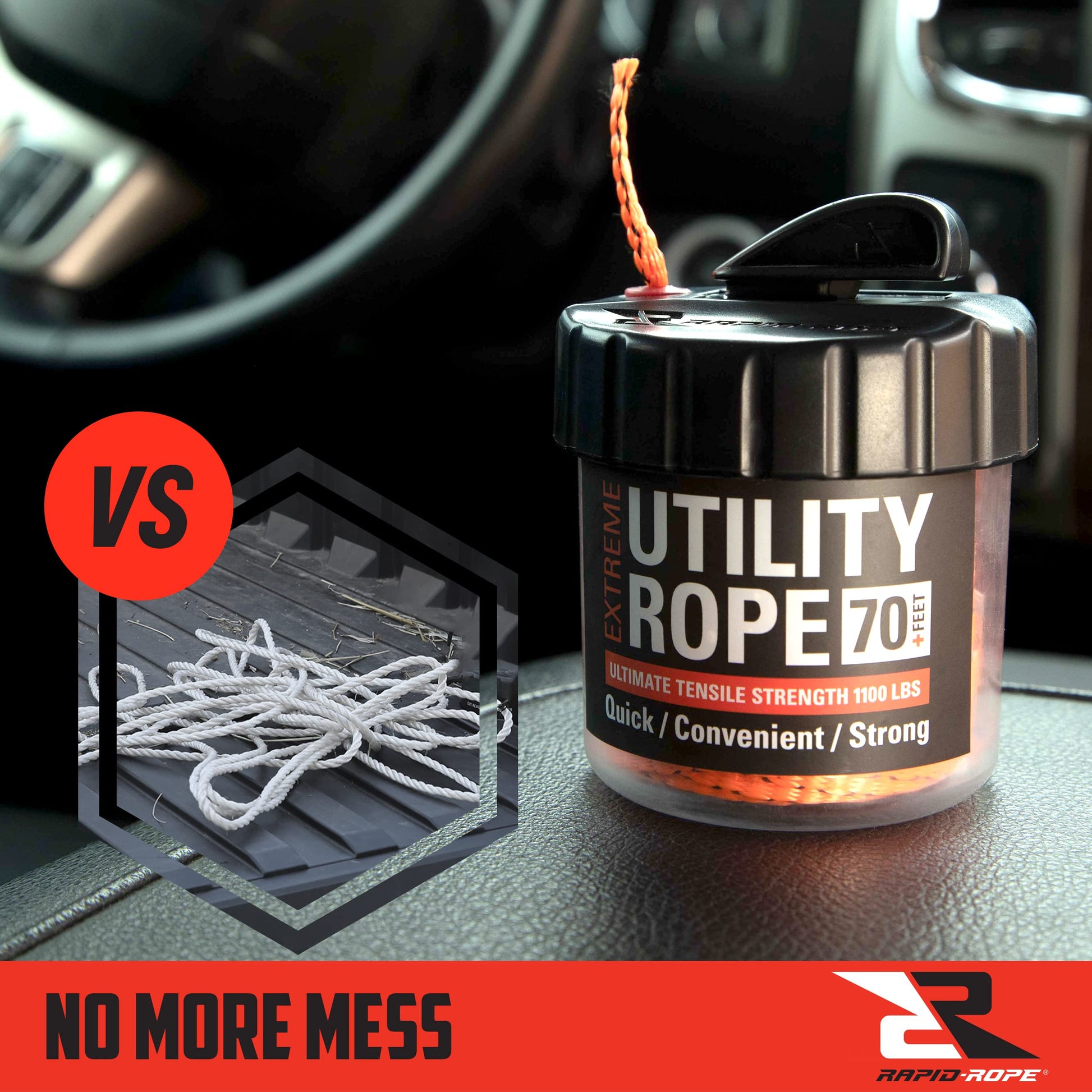 - MULTIPURPOSE AND REUSABLE: For indoor and outdoor use. Rapid Rope is perfect for camping supplies, backpacking gear, emergency kits, tie down rope, the possibilities are endless! The canister is reusable. When you run out of rope, just add a Rapid Rope refill, and you’re good-to-go.