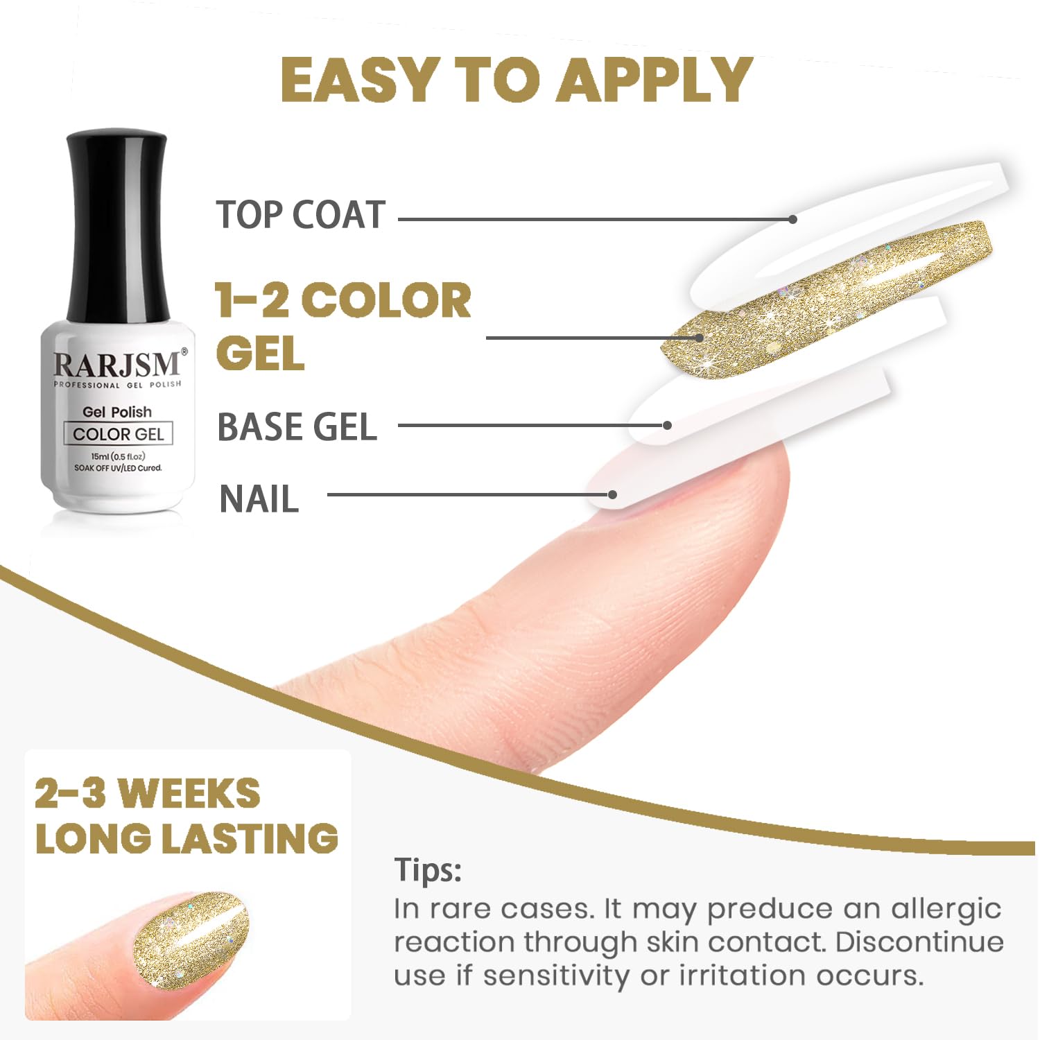 - WARM TIPS:Please read the instructions carefully before using the holographic gold glitter gel polish.Avoid the sparkly glitter nail gel contact with eyes,mouth and skin.If fell unwell, contact the doctor immediately