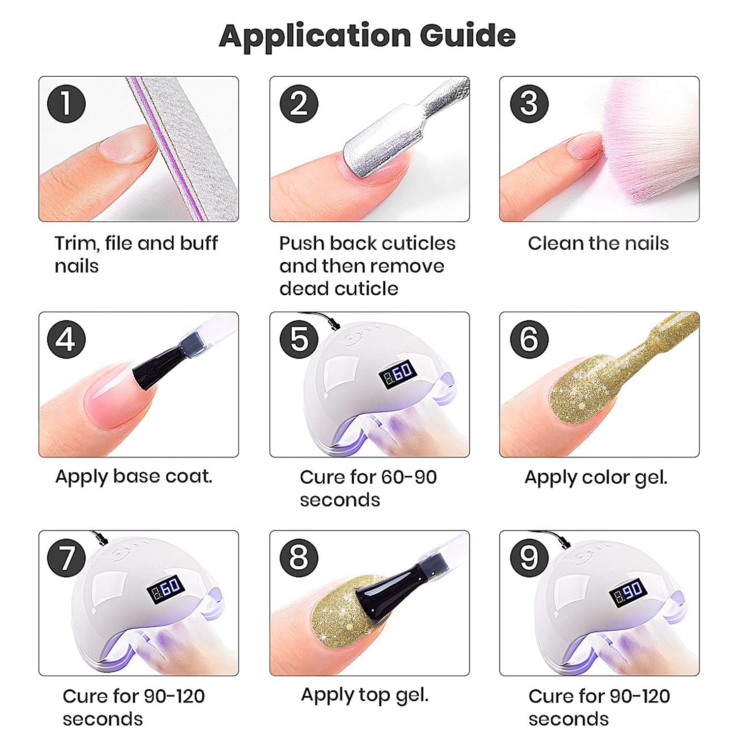- EASY APPLICATION LONG LASTING:This rainbow glitter gel polish is long lasting for 21+ days with perfect shine under proper application. Highly recommend a minimum of 60 seconds with a LED light and 2 minutes with a UV lamp for each layer