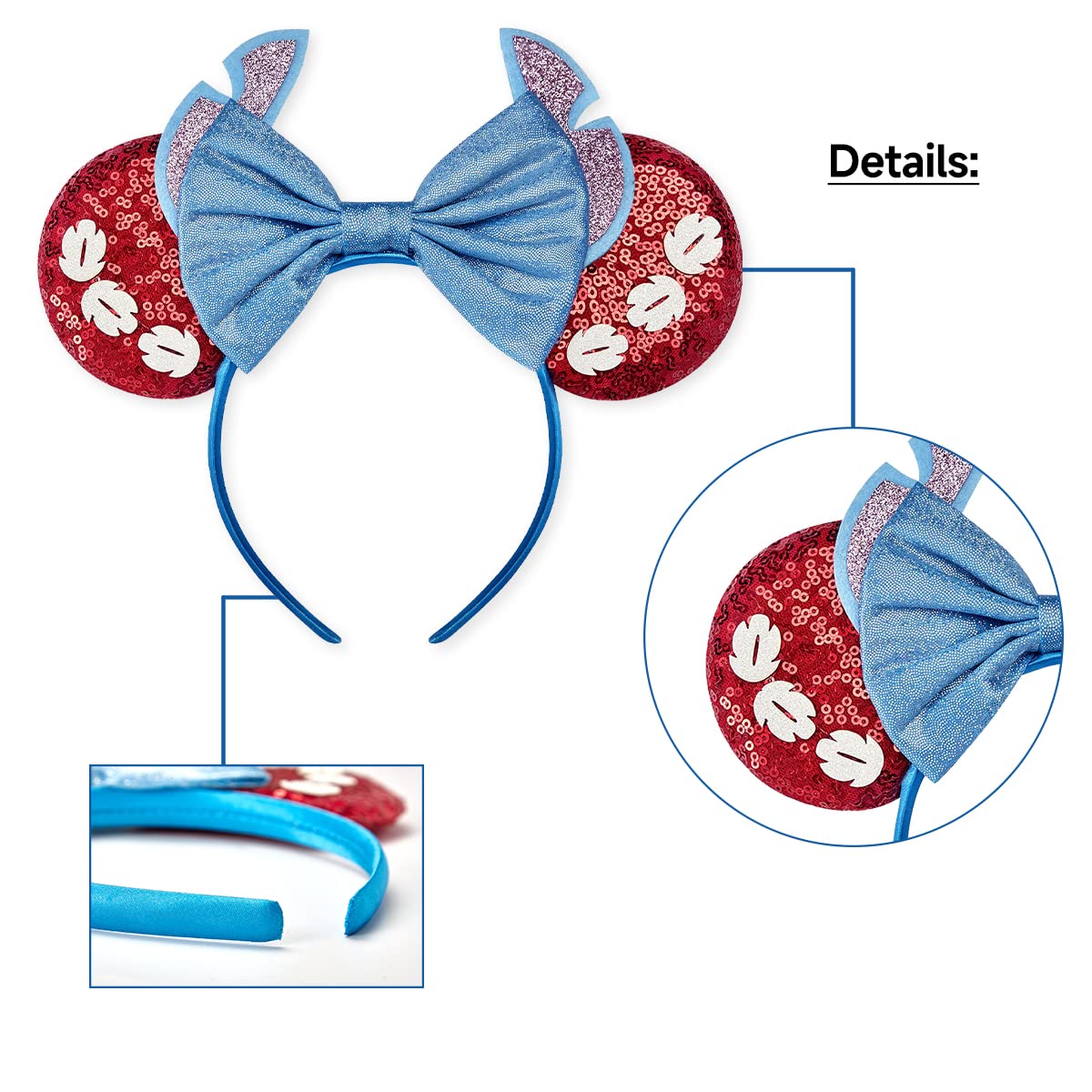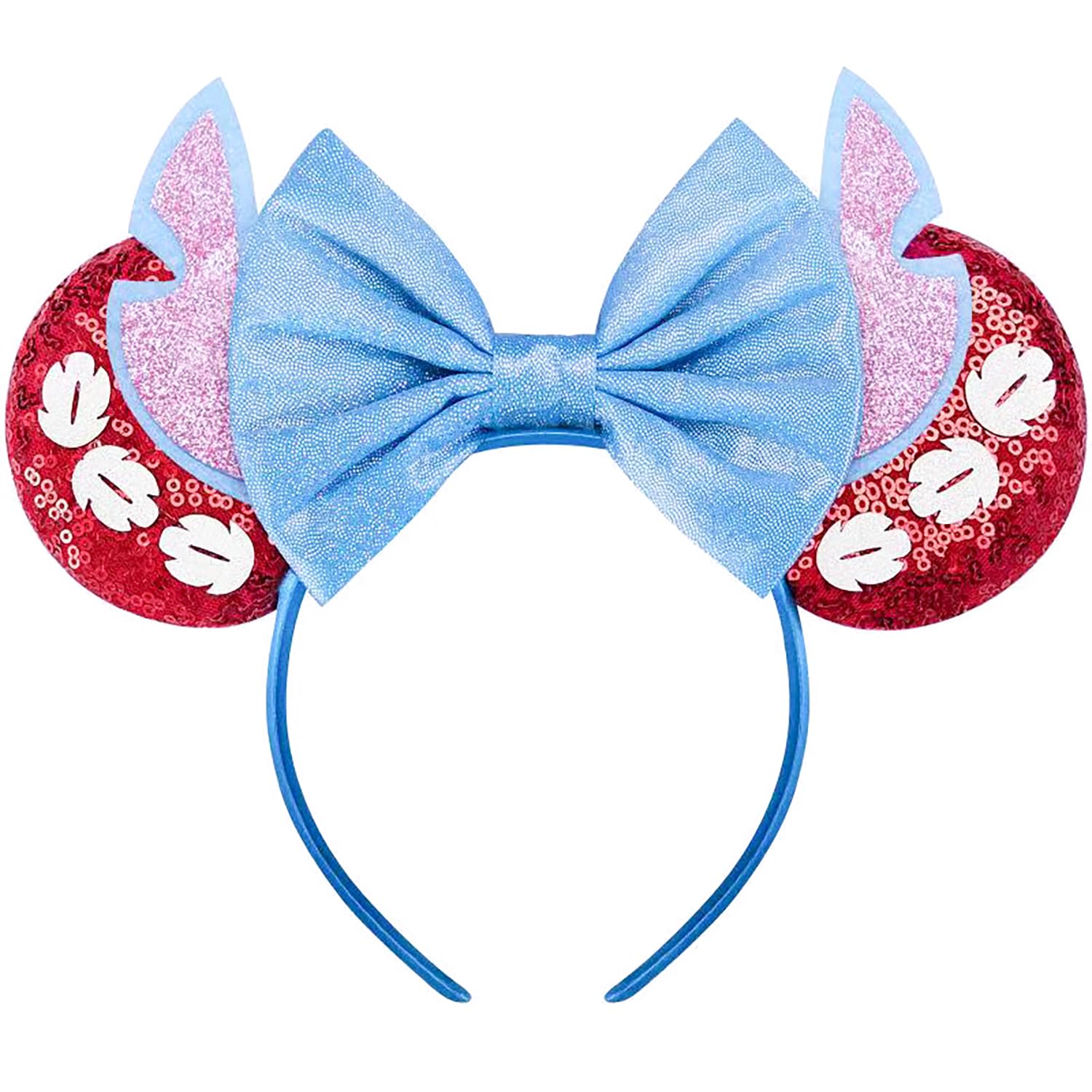 RAZKO Hairband, Stitch Red Minnie Ears Headband with Sequin Shiny Ears and Bow for Women Girls Hair Accessories, One Size Fits All, 16 Headbands Available