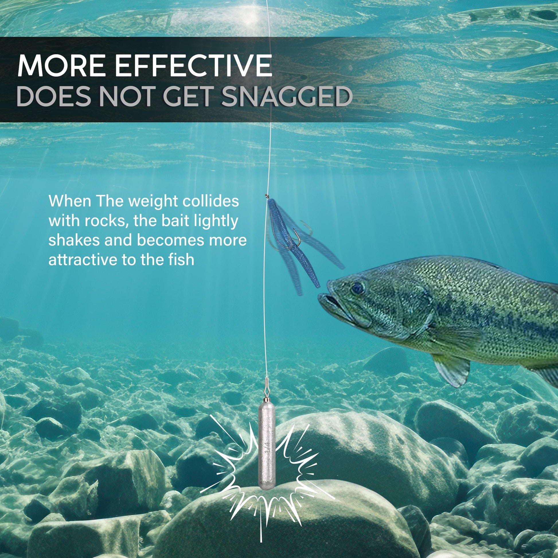 - LESS SNAGS; The thin shape of Reaction Tackle’s pencil sinkers gives you greater choices over where you can fish; The streamlined design of these drop shot sinkers have been engineered to easily slide free from rocks, weeds and submerged logs