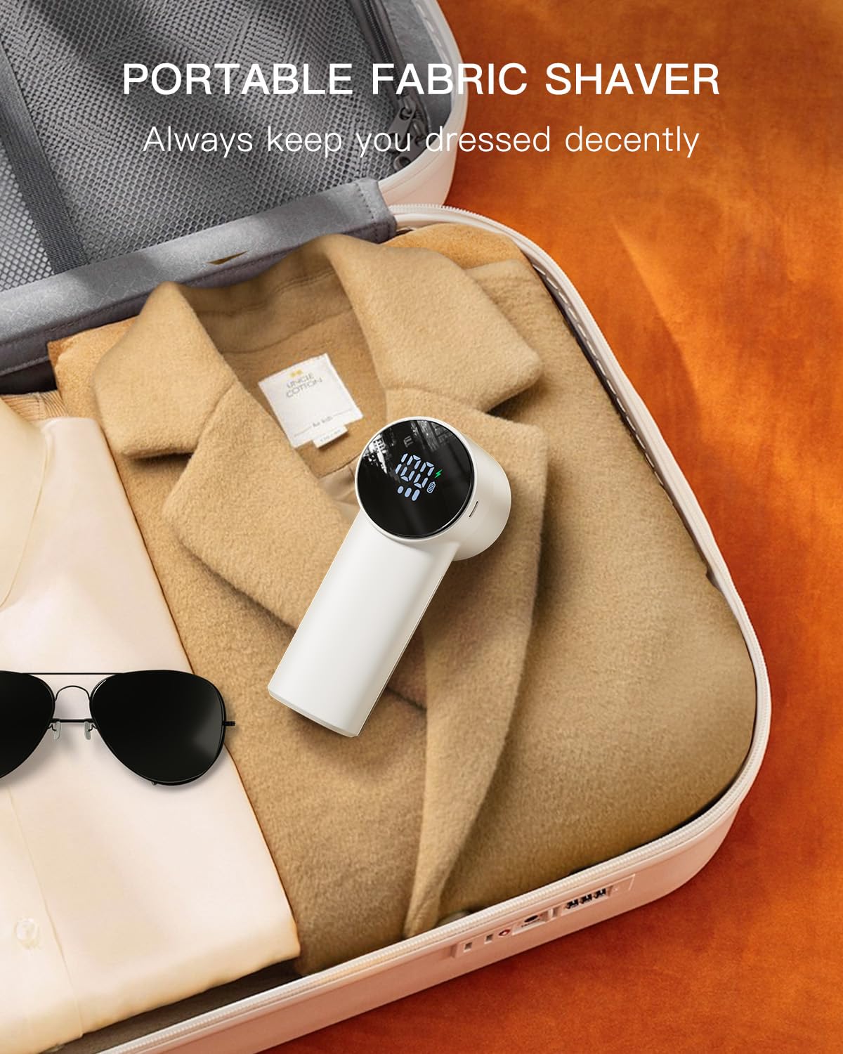 Rechargeable Fabric Shaver antime Electric Lint Remover Lint Shaver with Digital Display, Sweater Shaver with 6-Leaf Blades, 3 Speeds Defuzzer for Removing Fuzz from Clothes, Furniture, Blanket