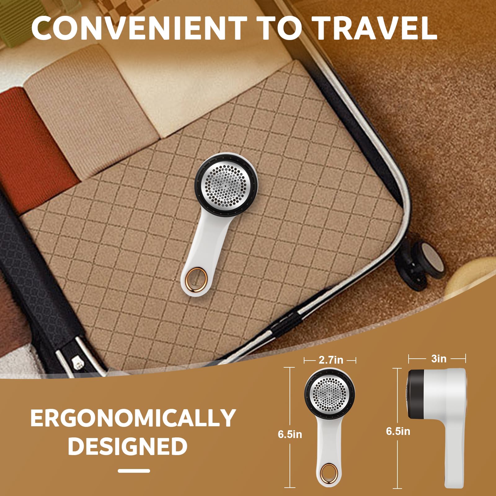 - PORTABLE & SMART TO USE: This fabric shaver have a smooth ergonomics handle ensuring a comfortable grip .It designed lightweight, portable features for household storage and traveling. What a lucky thing to have such a portable sweater shaver by your side when you are on a business trip that keeps your clothes neat as new.