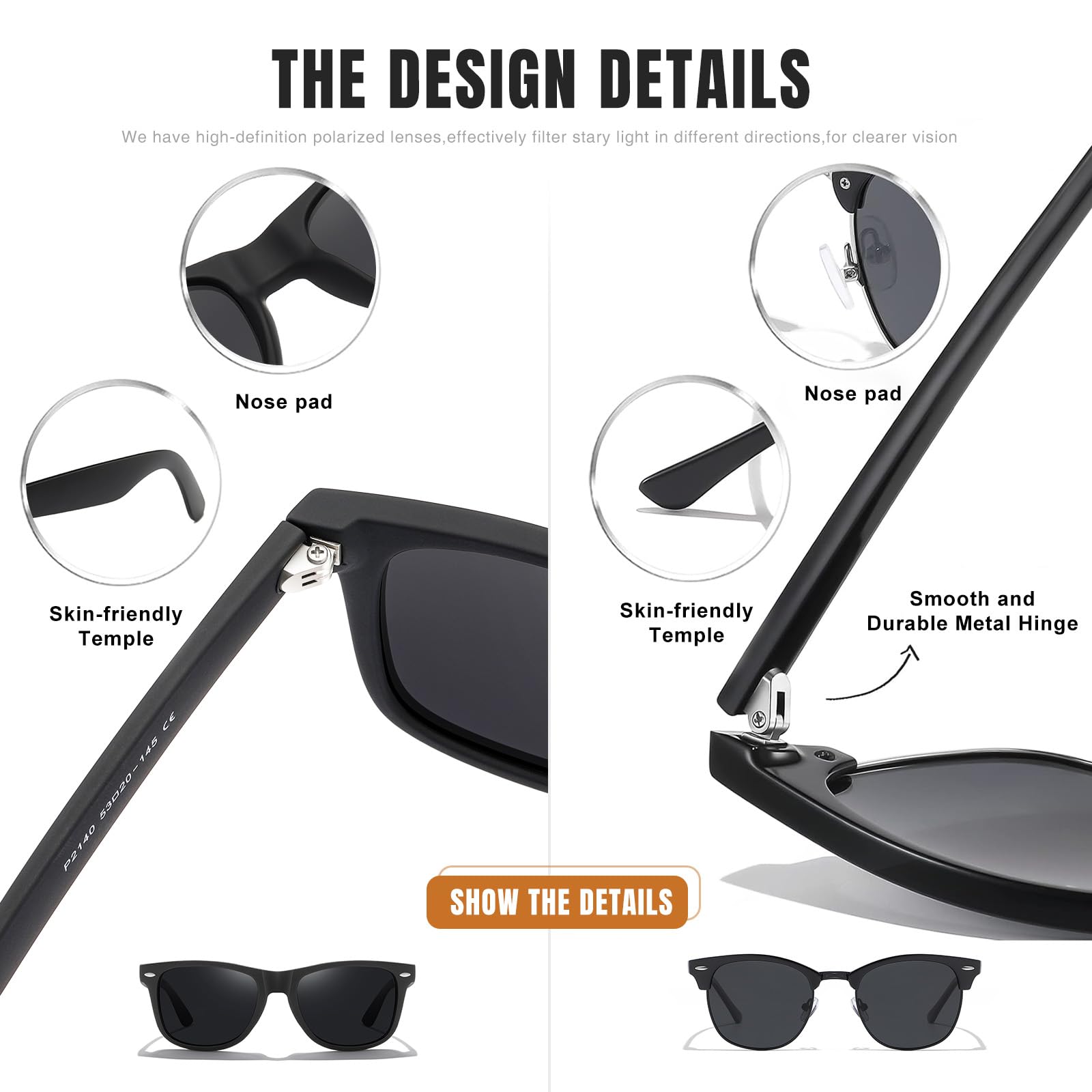 - 【Powerful Polarized Functionality】The polarization technology reduces sunlight glare, providing a clear and comfortable field of vision. Especially during activities such as driving working and hiking, polarized sunglasses minimize glare and enhance visual comfort.