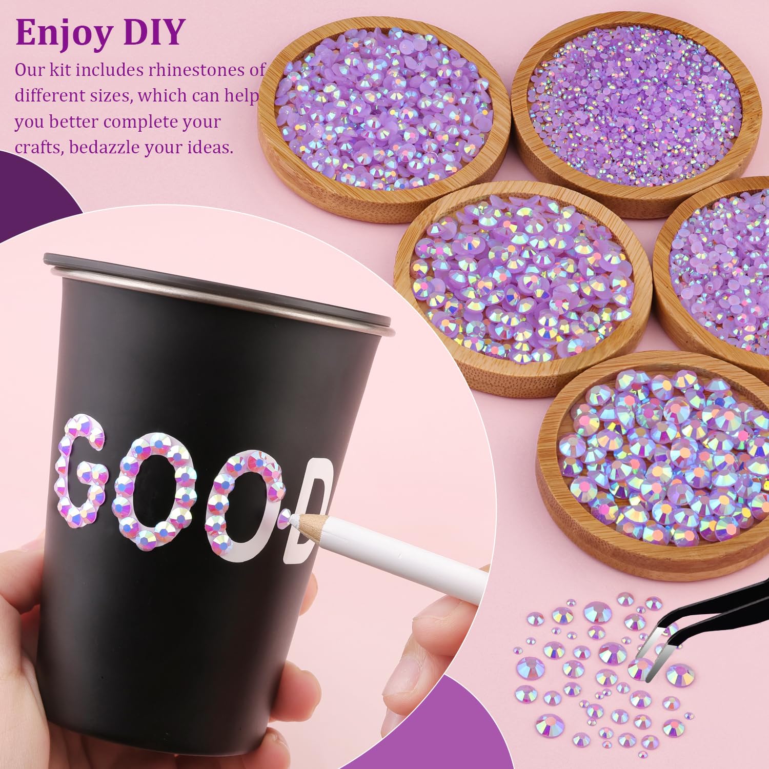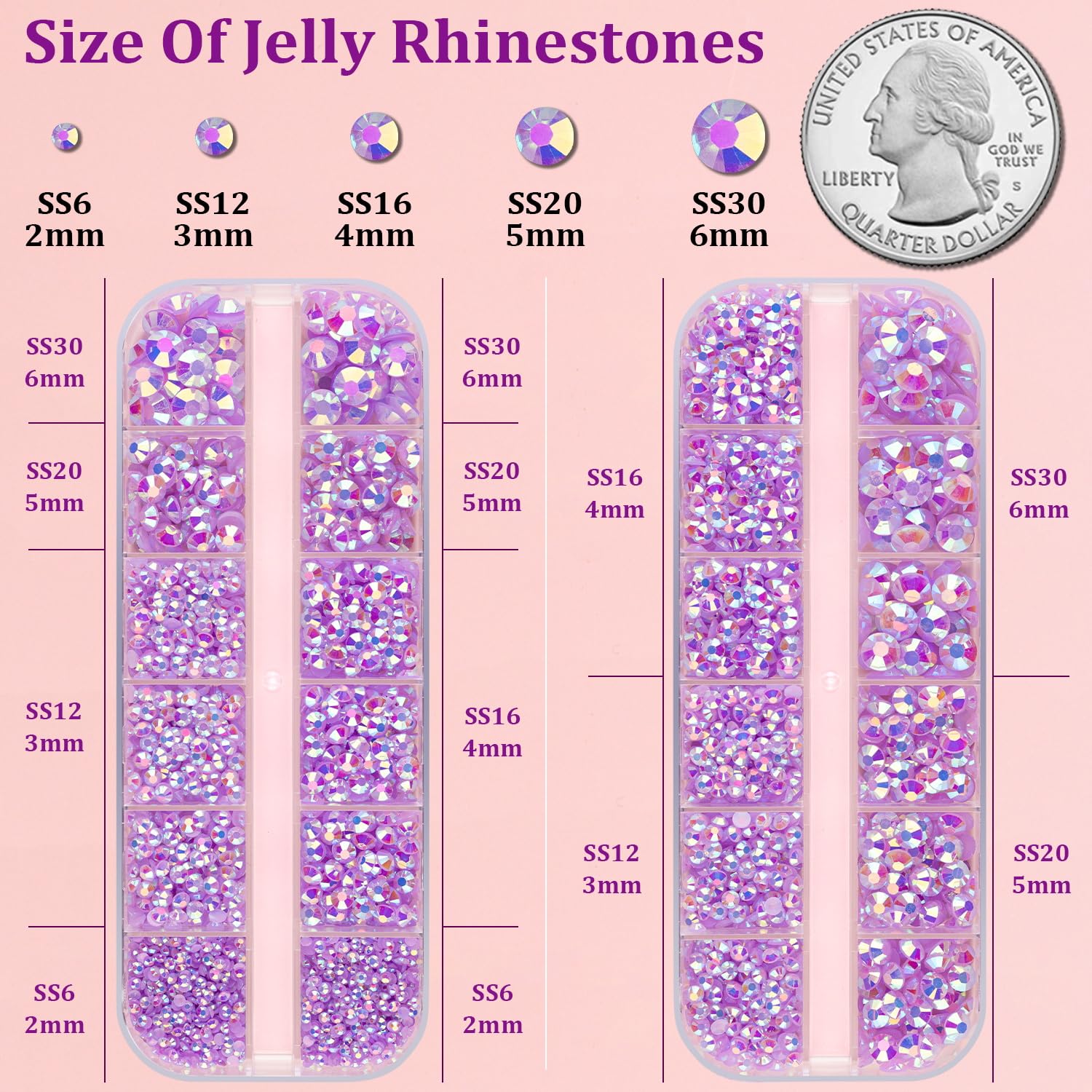 Resin Jelly Rhinestones for Crafting with B7000 Jewelry Glue, 2 Boxes Light Purple AB Flatback Crystals with 3Pcs 10ml Glue, Bedazzling Non Hotfix Gems for DIY Tumblers Clothing Shoes Manicure