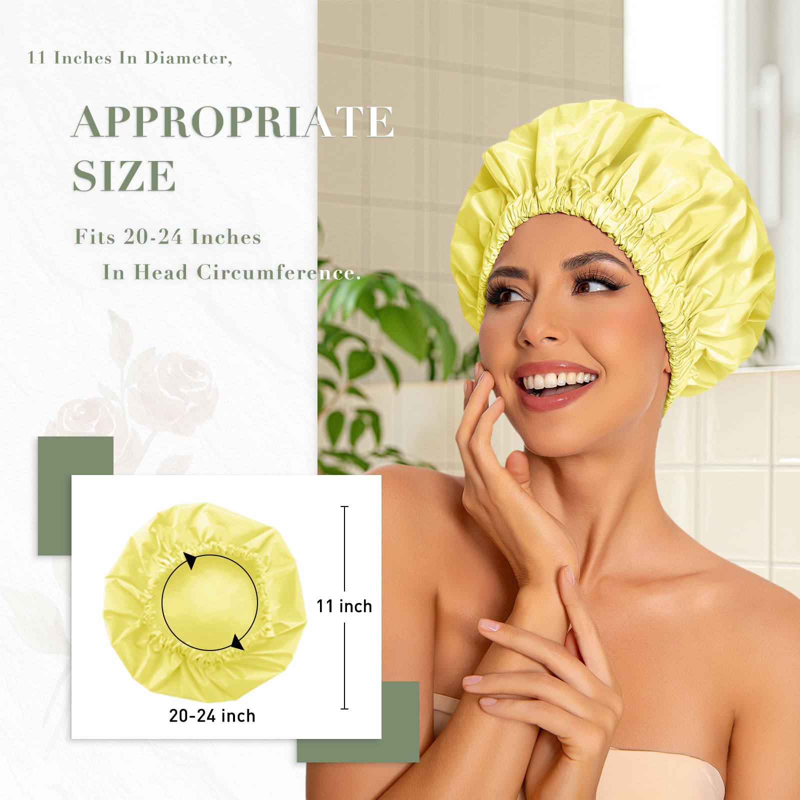 Reusable Shower Cap for Women, Large Waterproof Shower Bonnet Washable Elastic Band Bath Accessories Hair Hat for Long Hair, Braids(Bright Yellow)