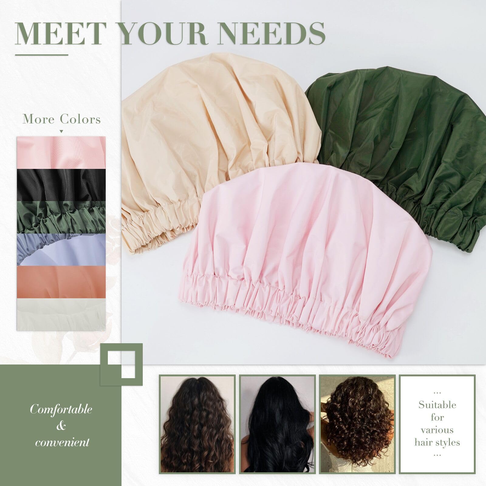 - 【Versatile Application】Our reusable shower caps can be used for showering, cooking, household cleaning, and spa sessions, keeping your hair dry and protecting it from dust and cooking fumes. This bath hair hat also fit for makeup, face washing, and applying facial mask, due to it suitable for all hair types-long, curly, voluminous or short, adding more convenience and beauty to your daily life.