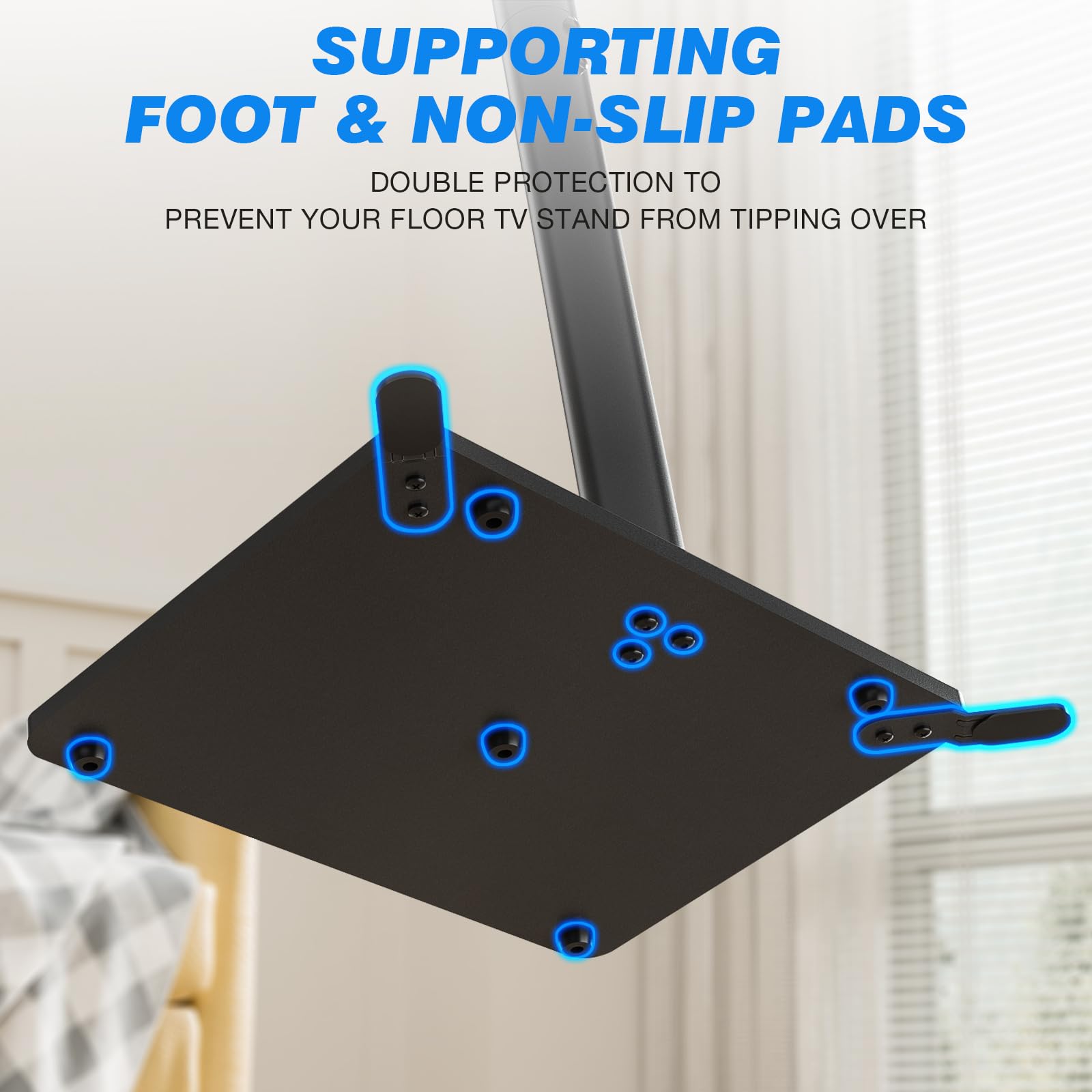 - 70°-SWIVEL - DELIVERS OPTIMAL VIEWING ANGLES: Our floor-standing TV stand rotates 35° left or right (70° total range), minimizing screen glare. Ensure an optimal viewing experience whether in your bedroom, living room, or even kitchen and patio. Immerse yourself in entertainment from any corner of your space.