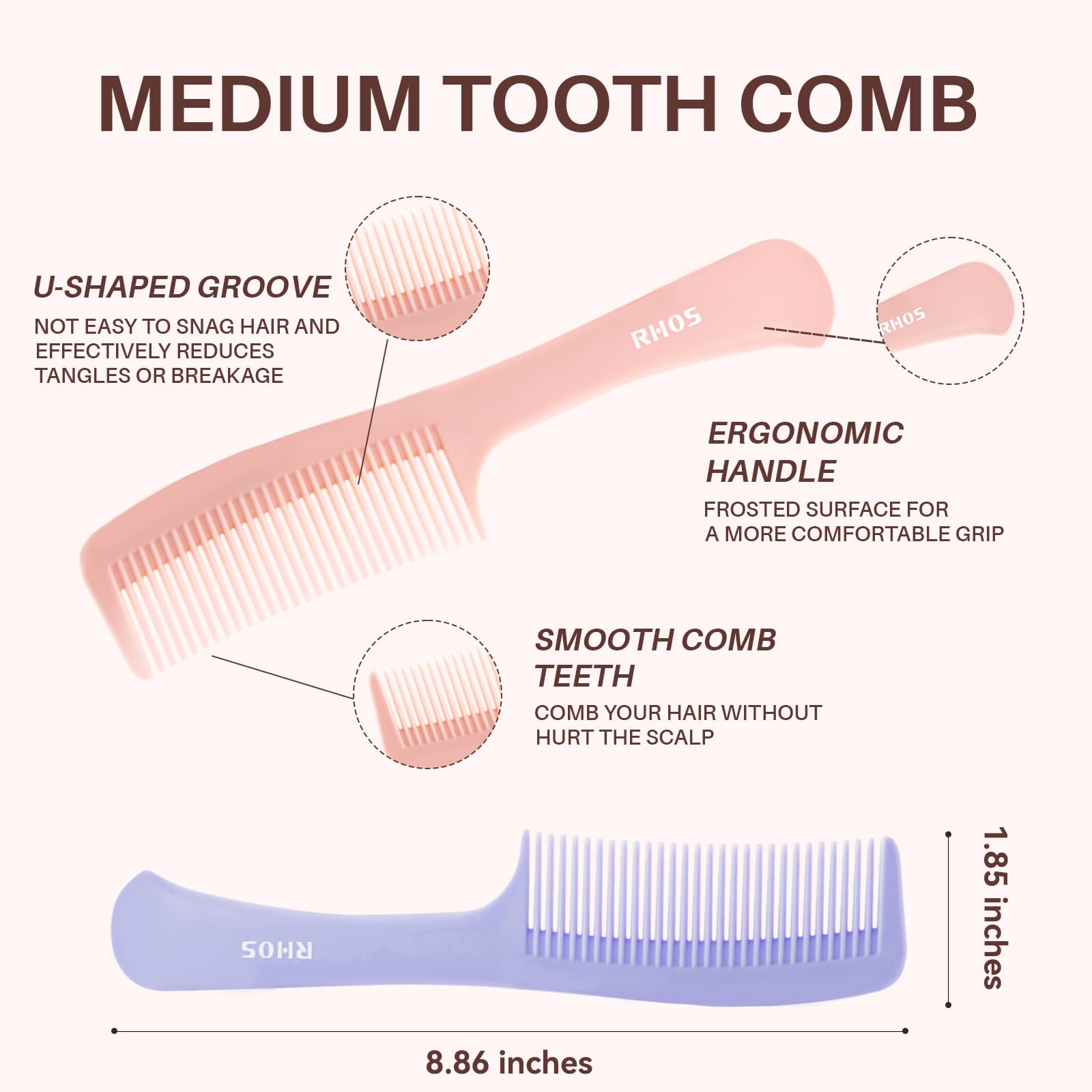 RHOS Detangling Hair Comb for Women,Hair Comb Set for Curly/Straight/Short/Thick Hair,Medium Tooth Comb for Wet and Dry Hair,Hair Detangler Comb(Pink&Purple)