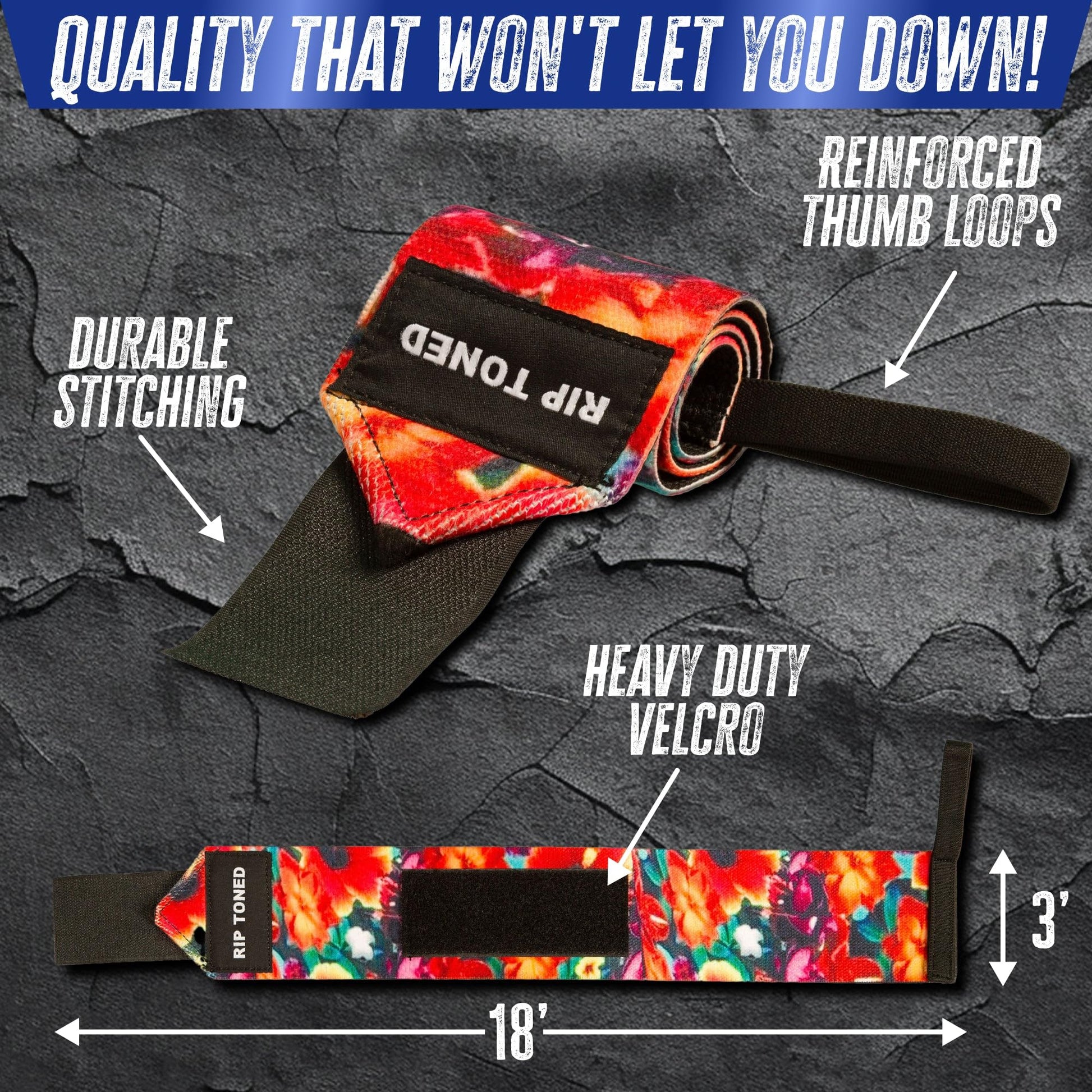 Rip Toned 18” Wrist Wraps - Wrist Straps for Weightlifting - Lift Better, Protect Wrist Pain - Adjustable, Durable, Machine Washable - Wrist Brace for Weightlifting - USPA Endorsed for Men & Women