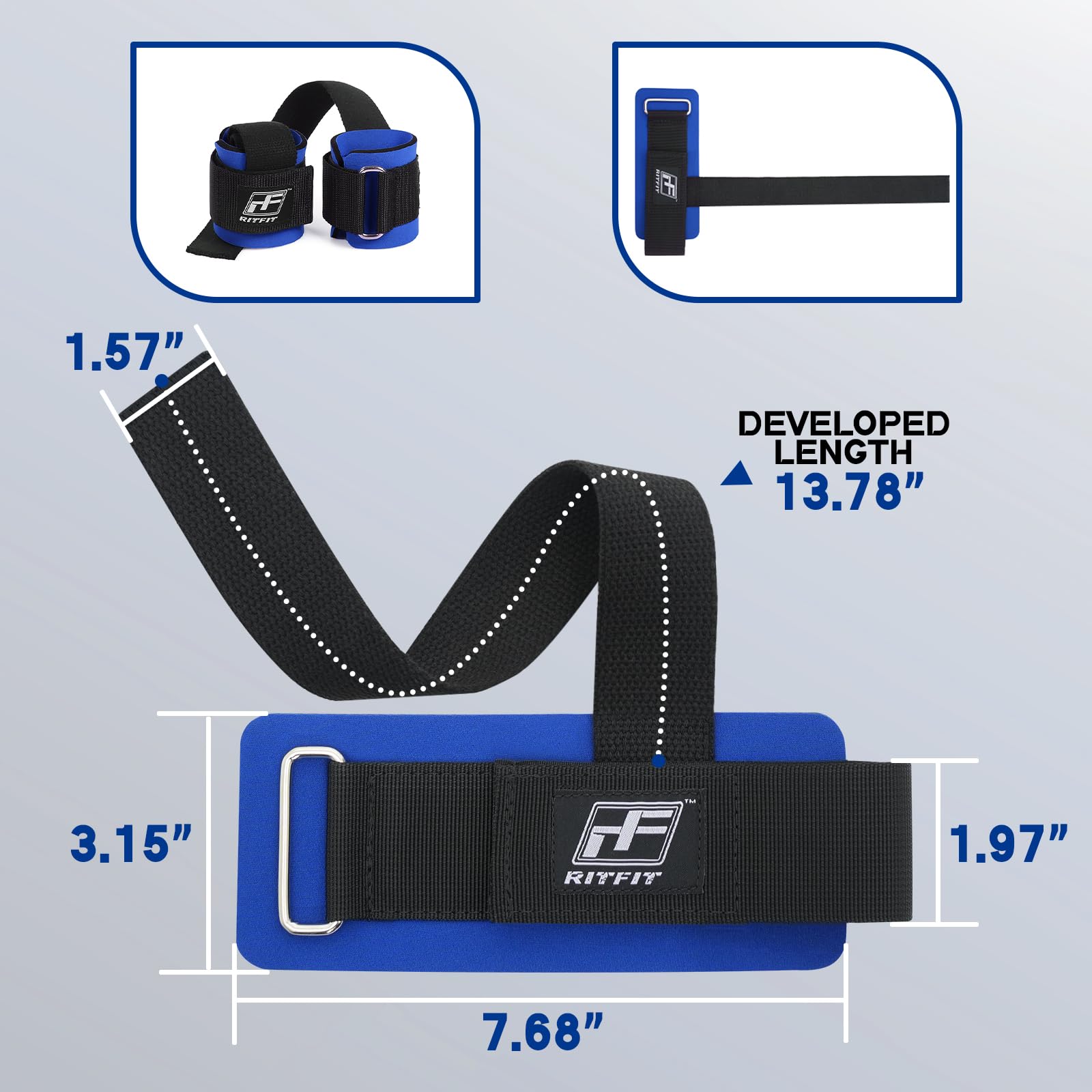- NEOPRENE PADDING : The RitFit has added extra thick neoprene padding on each wrist strap to avoid crazy blisters around your wrists. Neoprene Foam pad size: 7.1’’ x 3.2’ Inches, Foam Pad Thickness: 6.55mm.