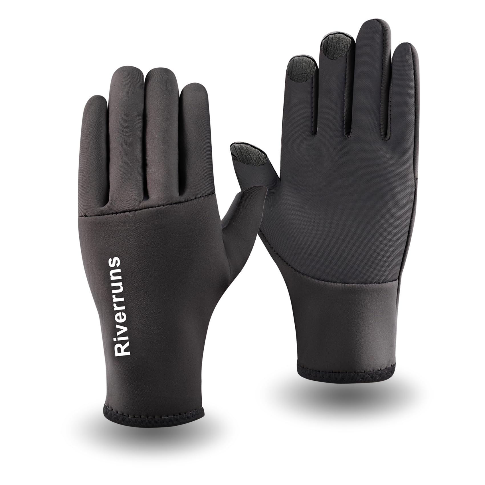 Riverruns Neoprene Fishing Gloves, 3-Cut Fingers Winter Gloves for Men, Cold Weather Gloves for Fly Fishing, Ice Fishing, Photography, Hunting, Black, M