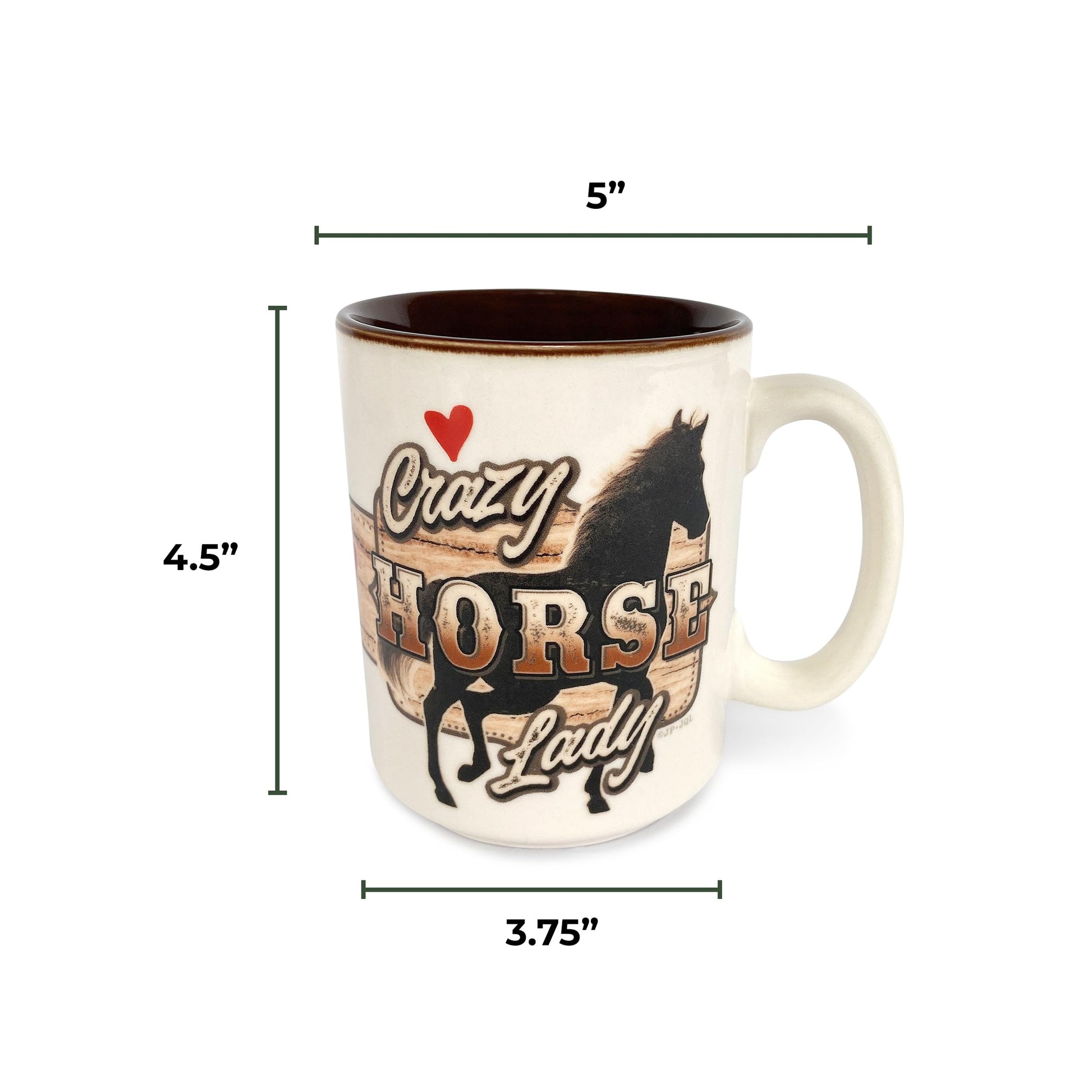 - Detailed Design: Ceramic mugs feature great-looking and unique art designs from the artists of JQ licensing; The design features a beautiful horse with the words 'Crazy Horse Lady'