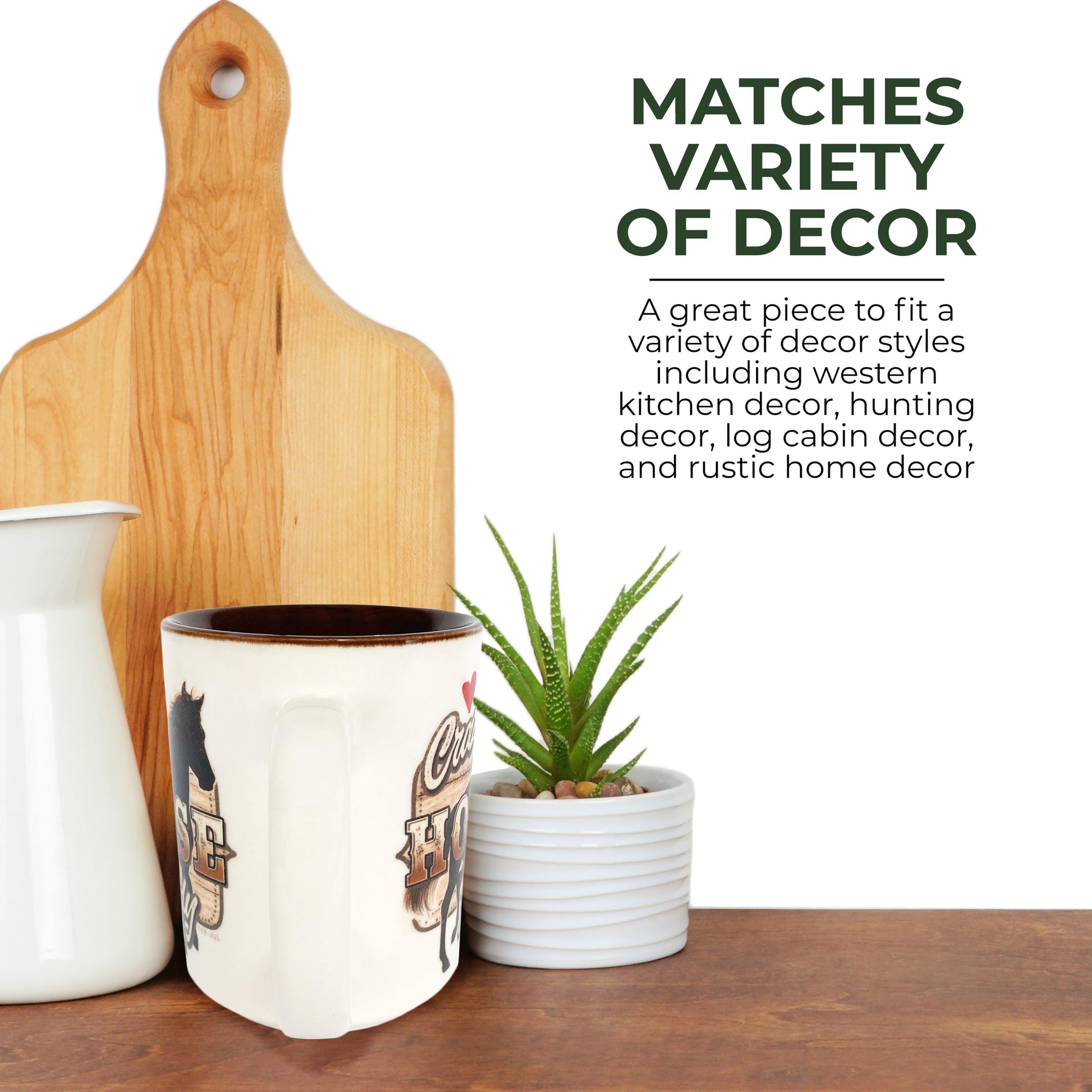 Rivers Edge Products Horse Ceramic Coffee Mug with Handle, 16 Oz, Espresso Cups and Coffee Cups Ceramic, Perfect for Coffee, Expresso, Latte, or Tea, Crazy Horse Lady