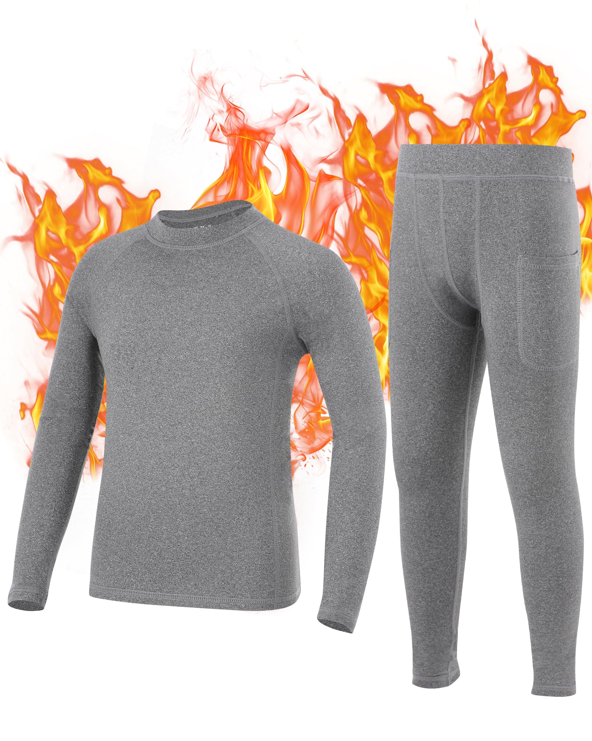 Roadbox Thermal Underwear for Boy - Fleece Lined Long Johns Warm Undershirt Cool Dry Base Layer Pants for Winter Running Grey