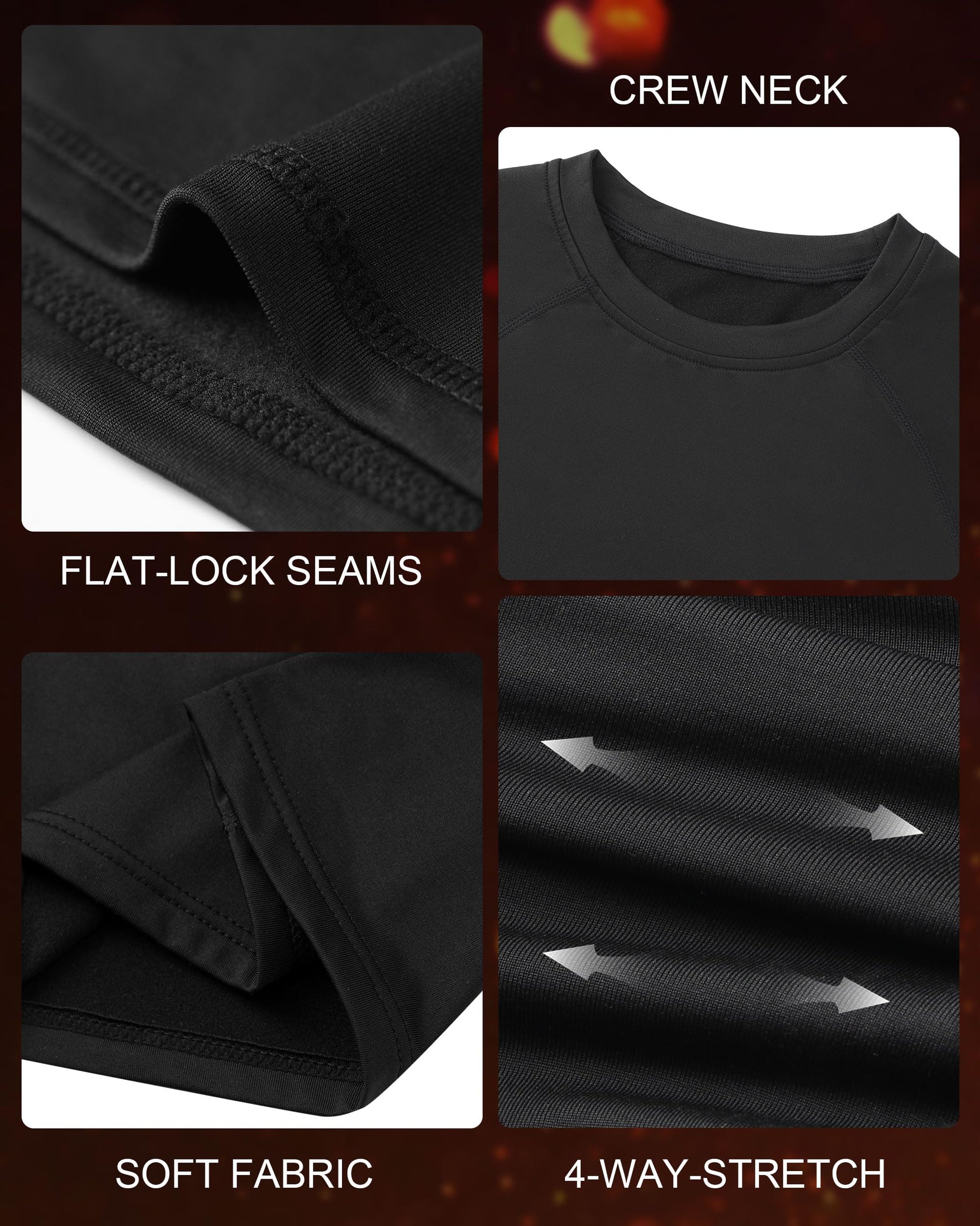 - 【Flatlock Seam】The compression thermal base layer features a smooth, flatlock seam structure that reduces irritation and friction. This design protects children's skin, allowing them to focus more on their sports and activities.