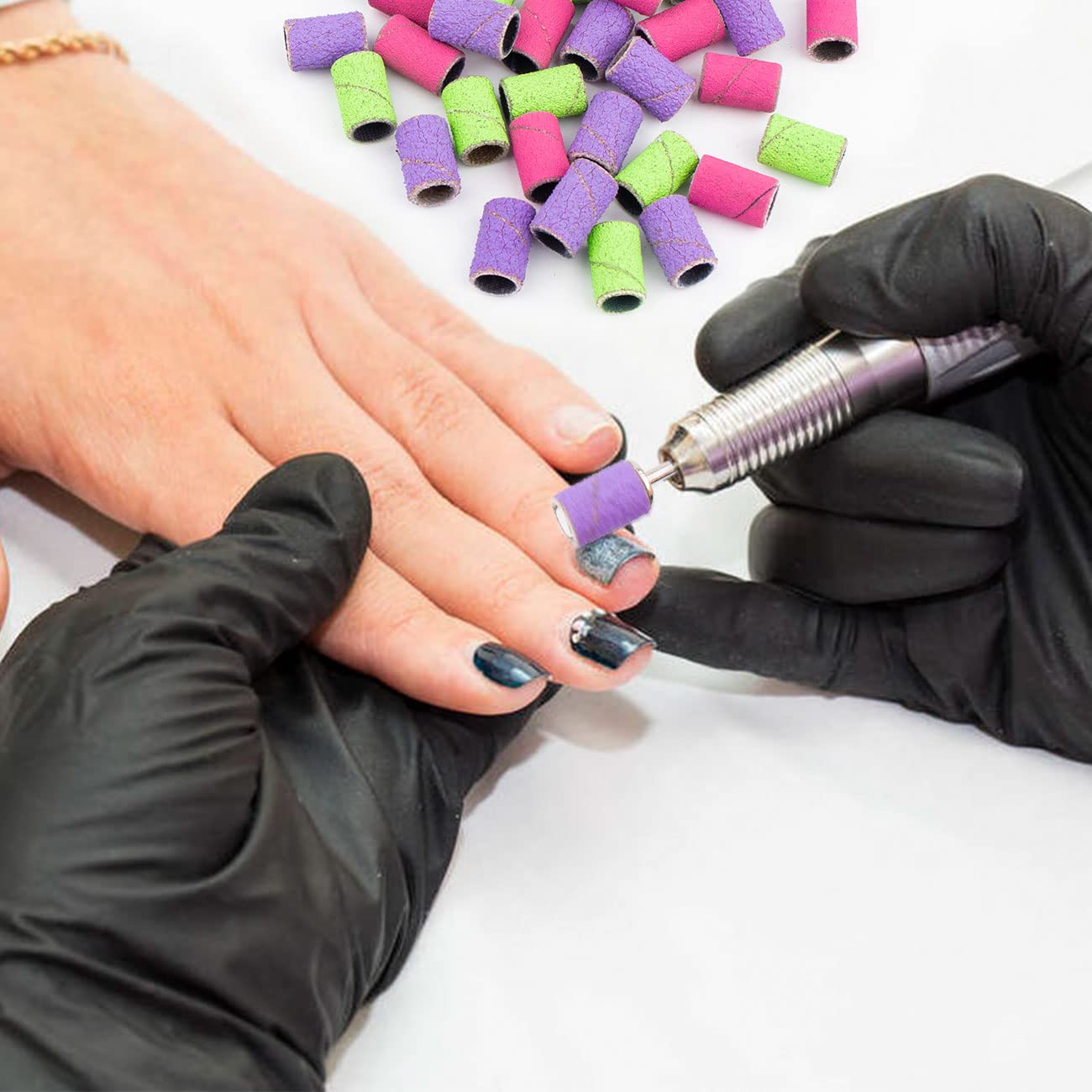 - Value set:You will receive 330pcs sanding bands for nail drill it consists of colorful colors including110pcs purple coarse grit 80#110pcs green medium grit150# and110pcs pink extreme fine girt 240 # and 2 pcs 3/32 inch silver nail drill bits for professional studio use or home use perfect for manicures and pedicures