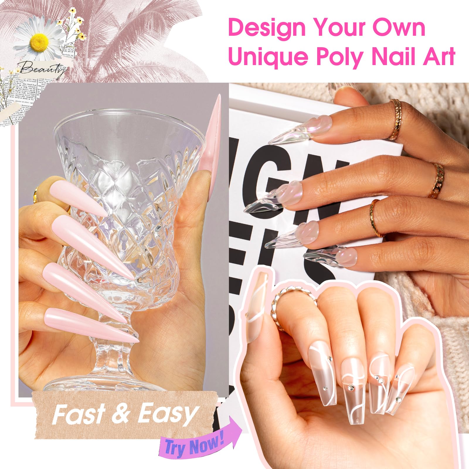 - 【LARGE CAPACITY ECONOMIC SET: 2 PCS 60ml pink and clear poly nail gel perfect to do dry flower nails, glitter nails or other nails art; Total 120ML is enough to make 2 years nail extension. One Nail Harder Set solves all needs!
