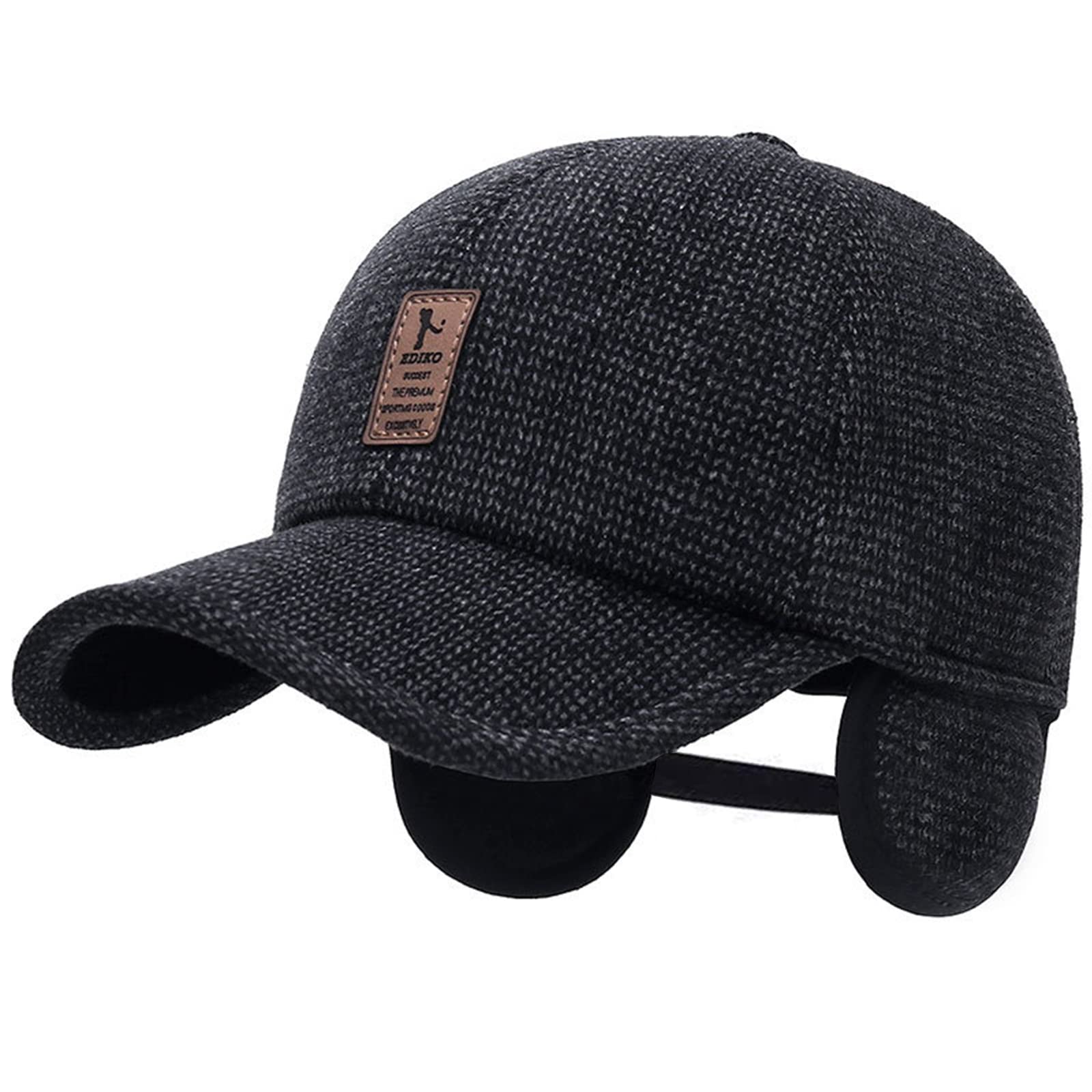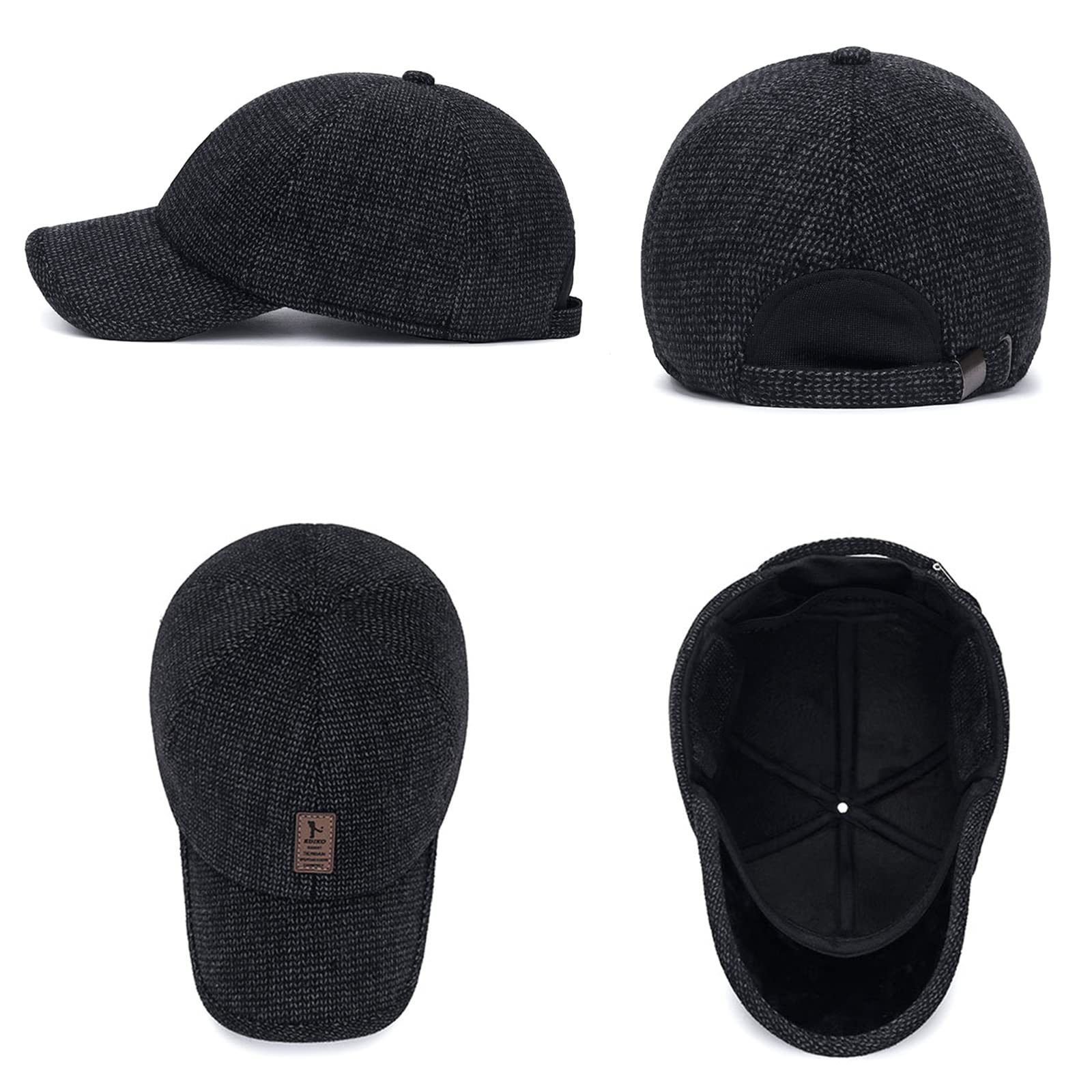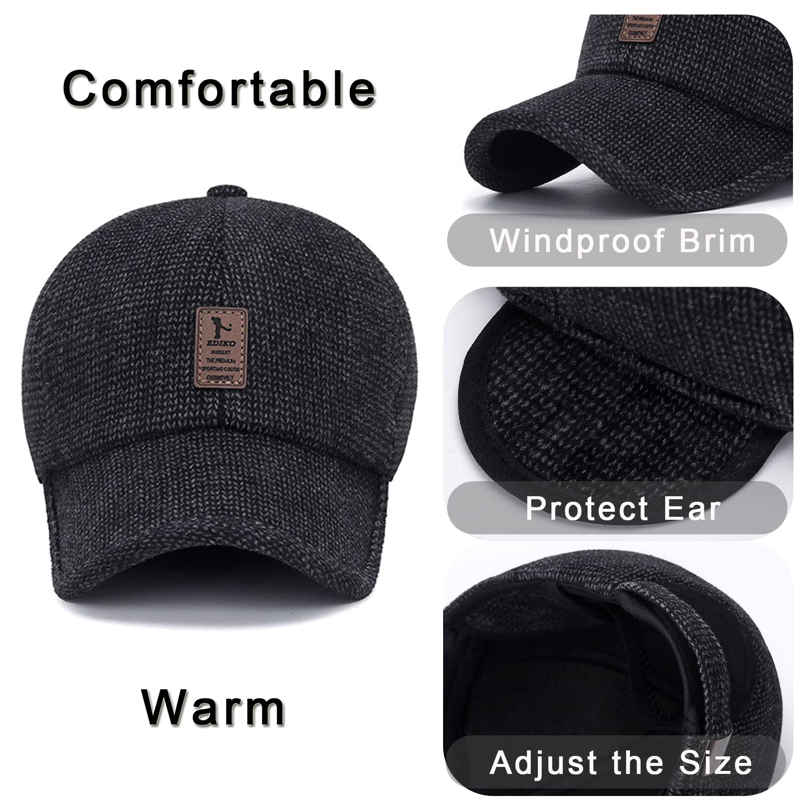 RRiody Winter Baseball Cap for Men, Adjustable Warm Outdoor Sport Golf Cap Hats Dad Caps Earflaps Thicken 55-60CM Black
